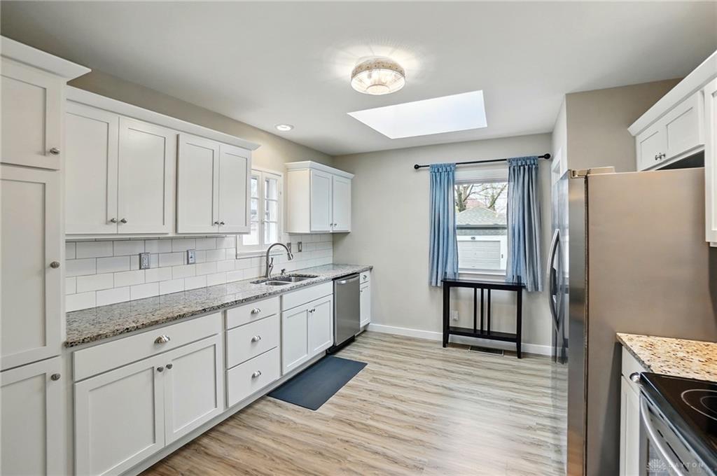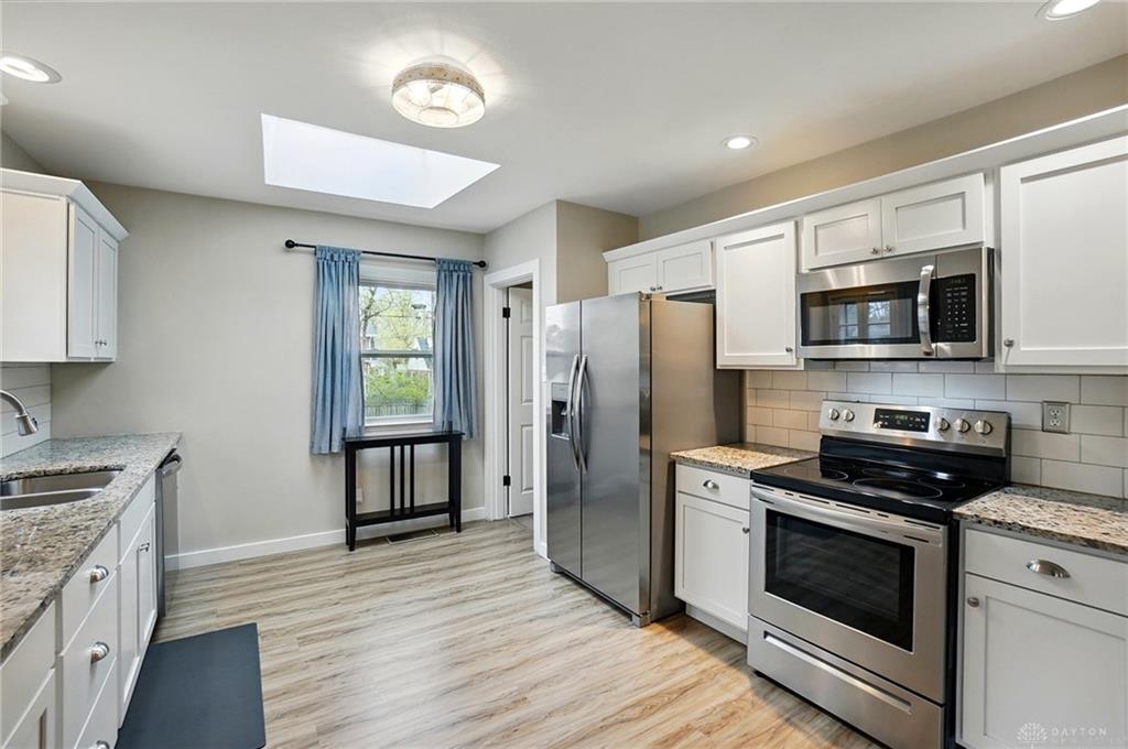 Cute as a button! Adorable, totally updated cottage that you can move right into and enjoy! Open main level floorplan with an abundance of natural light. Luxury vinyl plank flooring thru most of the home. Remodeled bathrooms. Newer windows including 2 skylights. State of the art kitchen, granite counters with custom cabinets. Even a pantry! The lower level is amazing with a rec room, office and a third room that could be used in various ways. Don't miss the enclosed front porch. 1 block from Orchardly Park and a quick stroll to both the library and Shops of Oakwood. Chimney and fireplace are not warranted. There is a VA assumable loan, which could be available depending on circumstances. $230,061.33 @ 2.99%