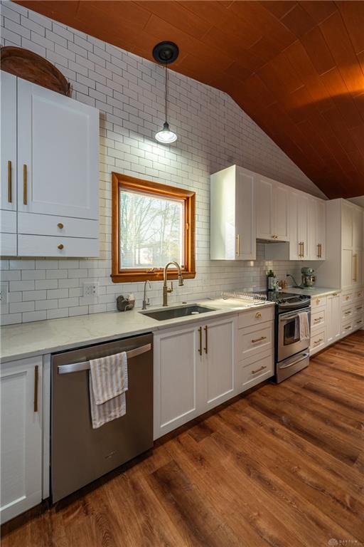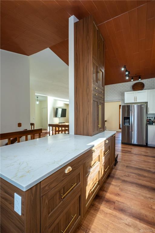 Prepare yourself for the fun & whimsical floorplan of this Washington Creek Neighborhood tri-level. Positioned privately at the end of a cul-de-sac, through traffic won’t be an issue. Step inside, scan the view of the vaulted ceiling, sunken living room, kitchen accent wall as well as the banister and rail railings that divide spaces without blocking views. This main level is perfect for entertaining. The dining room is adjacent to the completely updated kitchen. Beautiful cabinets, gold accents, granite counters, stainless steel appliance suite as well as the accent island, that is setup perfectly for counter height stools. Subway tile backsplash accents the kitchen from counter to ceiling. Down one short set of steps, you’ll find the warmest room of the house. The living room is center stage with the stone fireplace wall and hearth, complete with cast iron wood burning insert. This room flows into the adjoining rec room/office, complete with bar, back bar as well as beautiful wallpaper accents. Laundry is conveniently located on the lower level as well. From the main floor, head upstairs to find three generously sized bedrooms, large closets as well as a full hall bath. The primary bedroom boasts an en-suite bath, stand up shower as well as a huge walk in closet. Need outdoor space? The back yard is fenced and can be enjoyed from the concrete patio conveniently located just outside of the lower level living room. This home’s location, layout and stunning character, will not disappoint. Don’t miss your chance to see this gem in person!