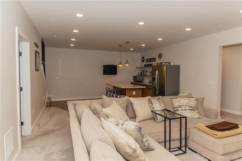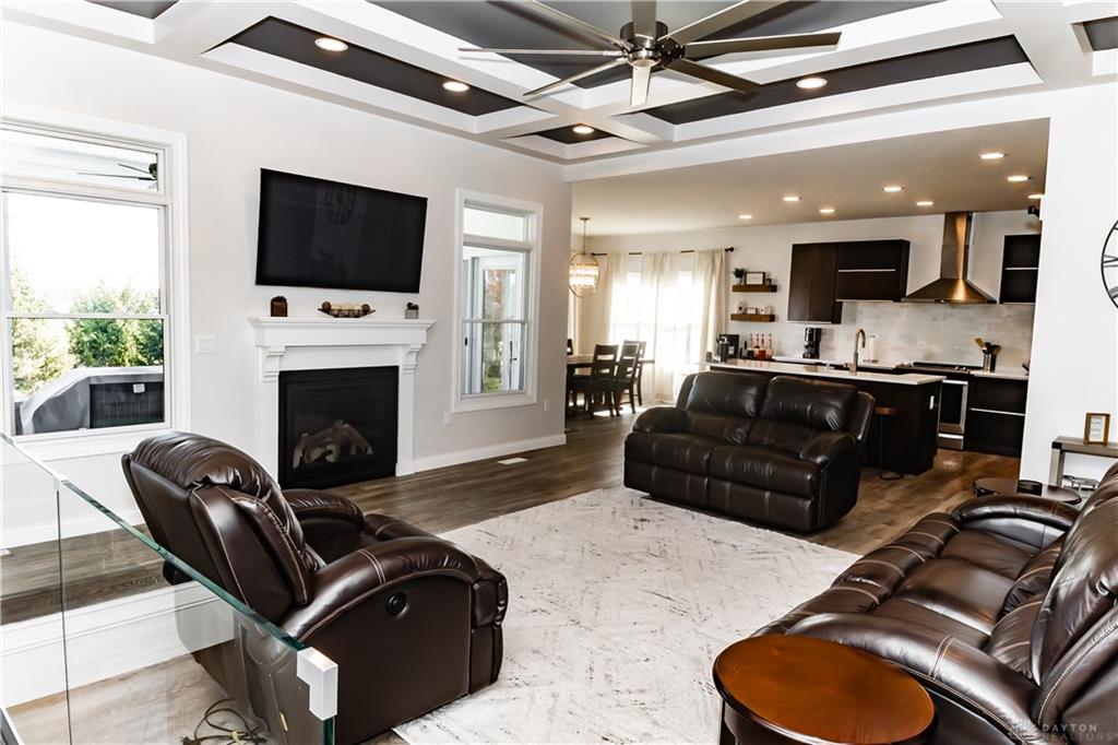 From the moment you step inside this custom-built 3/4 bedroom, 3 full bath ranch in the sought-after Hunters Ridge community, the home feels bright, open, and thoughtfully designed for today’s modern lifestyle. Sunlight pours through large windows, filling the open floor plan with warmth and highlighting the flow between the kitchen, dining area, and great room. The kitchen is the true heart of the home—styled with stainless steel appliances, sleek quartz countertops, an under mount sink, and a spacious walk-in pantry. It opens effortlessly into the great room, where 10-foot coffered ceilings and a gas fireplace create an inviting space for both quiet evenings and gatherings with friends and family. Just steps away, the dining area provides the perfect setting for meals, holidays, and celebrations. The primary suite is a private retreat, offering a generous walk-in closet, double vanity, relaxing soaker tub, and an oversized shower. Additional bedrooms on the main floor provide flexibility for guests, a home office, or a nursery. Downstairs, the fully finished lower level expands the living space even further. A large Rec room with a wet bar—complete with granite countertops and a full size and wine fridge—sets the stage for entertaining, movie nights, or weekend get-togethers. A comfortable family room, extra bedroom, full bath, and abundant storage make this level as functional as it is fun. Outside, a peaceful back porch overlooks the yard, a hot tub adds a final touch of comfort, offering a place to unwind and enjoy the seasons. This home blends modern design, comfortable living, and thoughtful features throughout—a beautifully crafted space ready to be enjoyed for years to come.