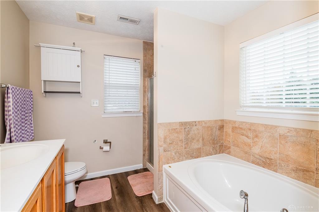 Located in the desirable Royal Pointe community, this welcoming brick two-story offers a spacious and flexible floorplan in a prime Beavercreek location. The main level features a dedicated home office with French doors, a large kitchen with ample cabinetry, and an open layout that connects the dining area to a comfortable family room with a gas fireplace. A bright all-season room expands the living space and provides a relaxing view of the backyard year-round. Upstairs, you’ll find three oversized bedrooms, including a generous primary suite with a garden tub, separate shower, and dual sinks. The finished lower level offers even more room to enjoy, featuring a sizable recreation area, a versatile flex room ideal for hobbies or fitness, and a full bath. With close proximity to Wright State, WPAFB, Soin Medical Center, shopping, and restaurants, this home delivers space, convenience and functionality in one package. A fantastic opportunity in a highly sought-after community.