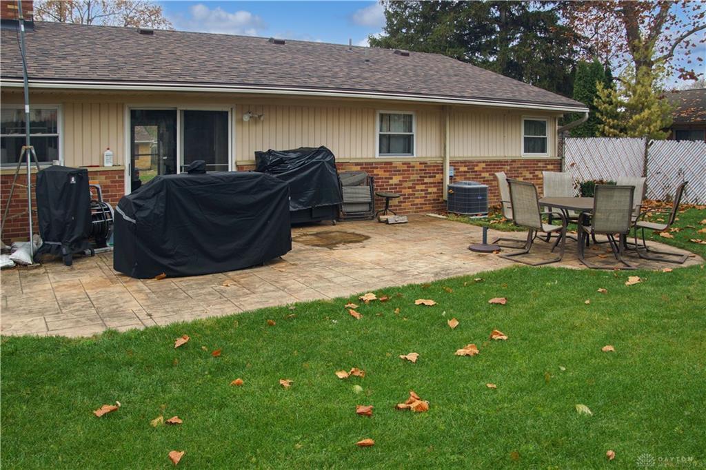 Welcome to this beautifully maintained 3-bedroom, 2-full bathroom ranch, perfectly situated in the desirable Kettering area. Designed for effortless one-level living, this home offers an exceptional blend of modern comfort and practical convenience, making it a true gem for those seeking low-maintenance living without sacrificing space or style. The home is centered around a truly spacious and light-filled great room, which serves as the ideal hub for both daily relaxation and entertaining guests. This open-concept design ensures a seamless flow throughout the main living areas and into the kitchen. The thoughtful layout provides three comfortable bedrooms, the primary with its own private bathroom and the other full bathroom in the hallway. For ultimate convenience, the home also features a separate, dedicated laundry room. The appeal extends outdoors to a private, beautifully appointed retreat. The back yard is fully fenced, offering security and privacy for get togethers, pets, or quiet enjoyment. For outdoor entertaining, step onto the gorgeous stamped concrete patio. This durable and stylish feature is perfect for summer barbecues, hosting outdoor gatherings, or simply unwinding after a long day. Located in a sought-after Kettering neighborhood, minutes from Oakview Elementary and 2 blocks from Alter High School. This home offers easy access to local amenities and parks, making it a must-see.