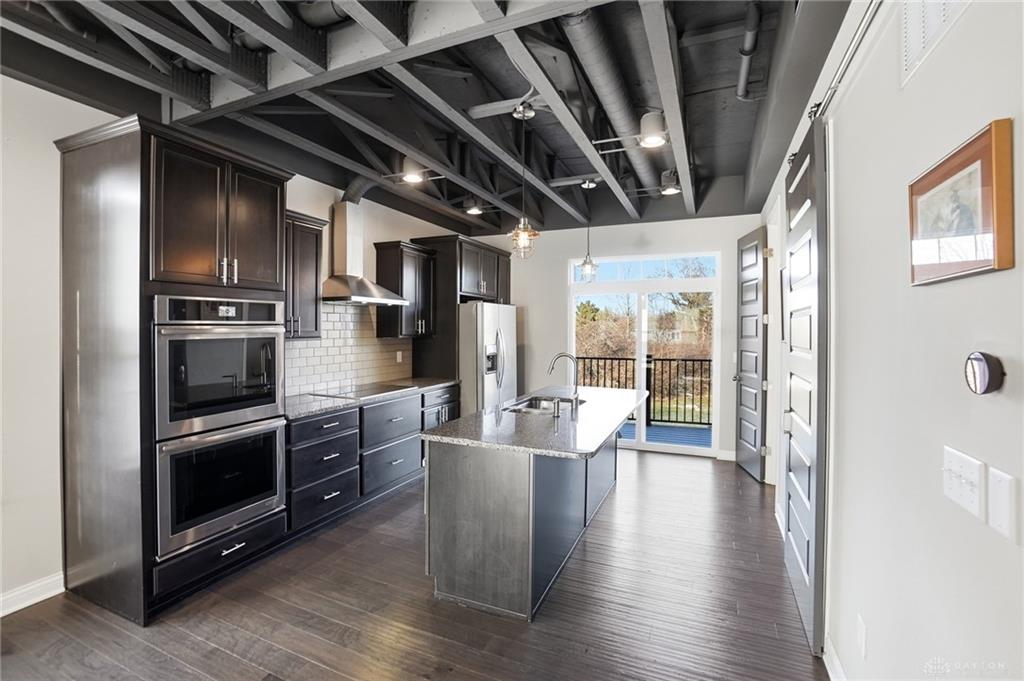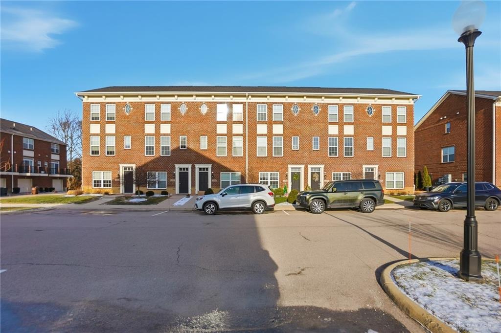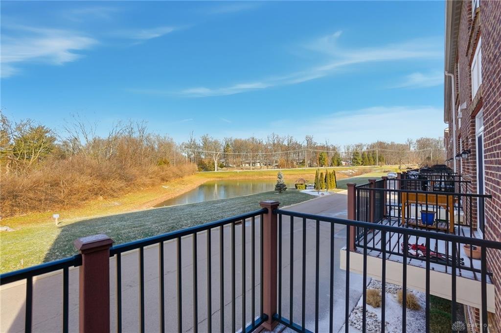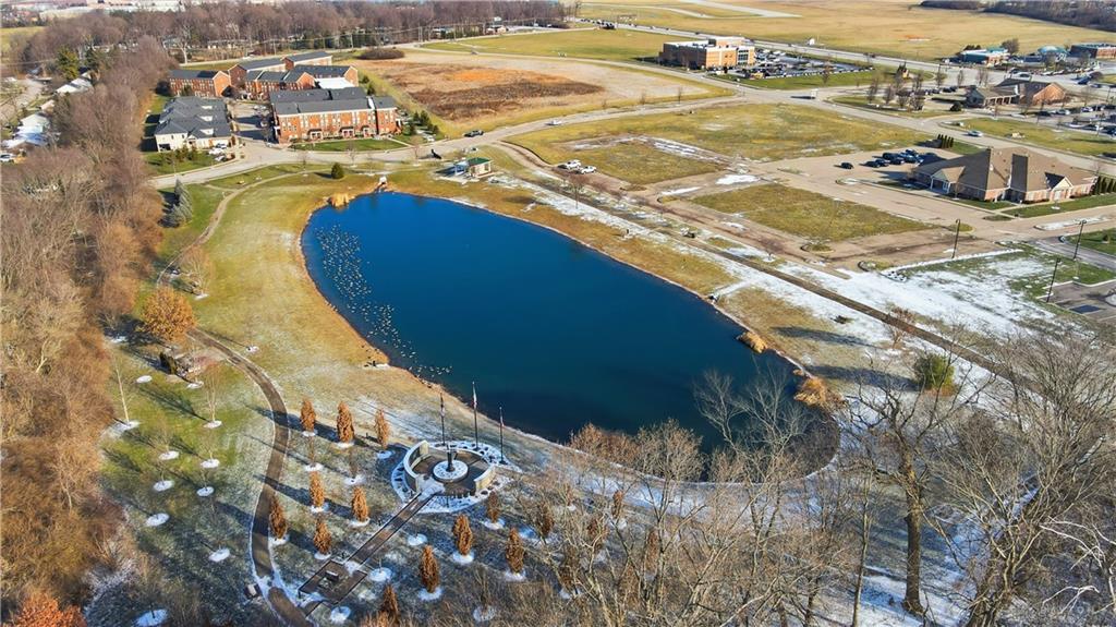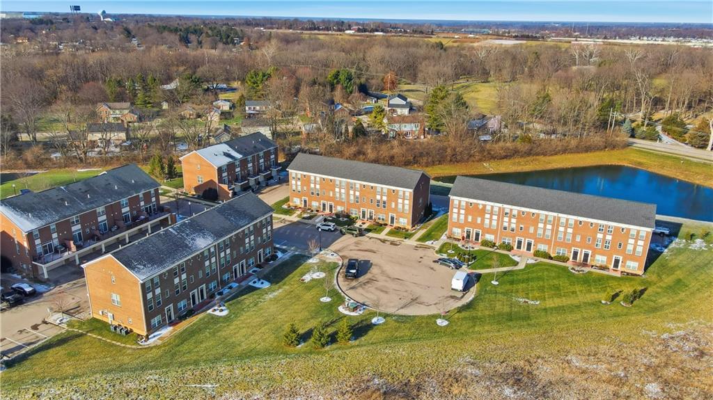 Discover elevated living in this highly sought after end unit brick condo, where refined design and modern comfort come together in a truly sophisticated setting. Dramatic architectural elements create an impressive first impression, including an exposed brick feature wall, open truss ceilings approximately nine feet high, abundant natural light from oversized windows, and rich wood flooring that sets a warm and luxurious tone throughout. The gourmet kitchen feels like a true culinary retreat, finished with granite countertops and high end Jenn Aire appliances. A spacious bar area offers the perfect setting for entertaining and flows beautifully toward the patio doors that open to the private second floor balcony overlooking the community pond. It is an ideal spot to unwind, sip wine, or host friends while enjoying the peaceful view. The elegant owners suite provides a serene escape, complete with a generous walk in closet thoughtfully outfitted with built in storage to maximize organization and function. The ensuite bath features a dual sink granite vanity and a beautifully finished walk in shower, creating a spa inspired experience right at home. A versatile bonus room offers the flexibility of a private office or an additional bedroom depending on your needs. With more than thirty nine thousand dollars in carefully selected upgrades, the quality and craftsmanship throughout this home are truly impressive. This luxury, walkable community places you moments from boutique shopping and dining at Village Park, with additional destinations nearby at Marketplace at Settlers Walk and Austin Landing. Gardner’s Park is just across the street with a scenic walking path and tranquil pond. Convenient access to I75 and I675 allows easy travel to both Cincinnati and Dayton, making this an exceptional place to call home.