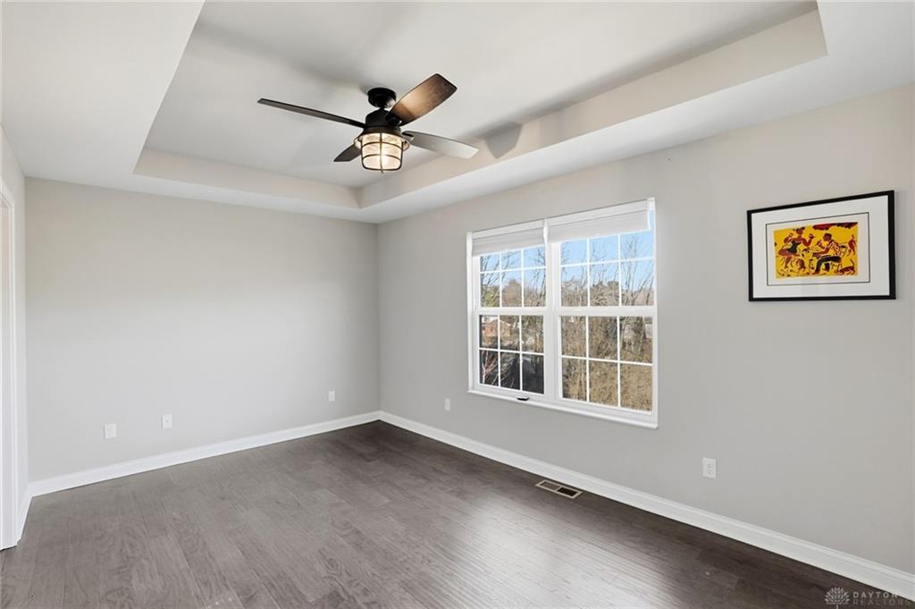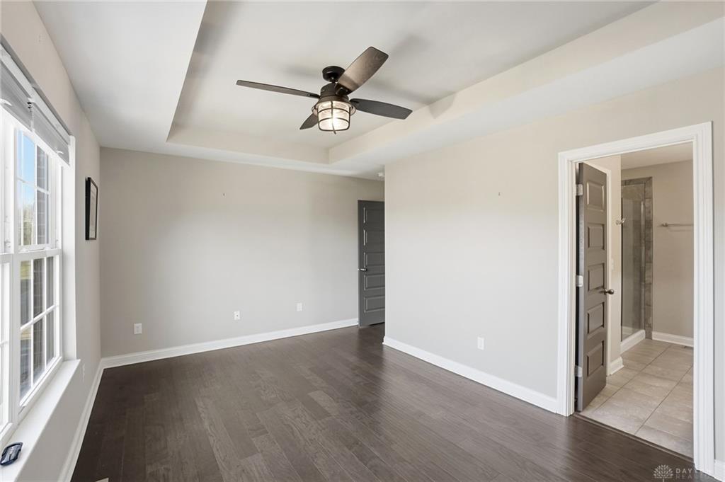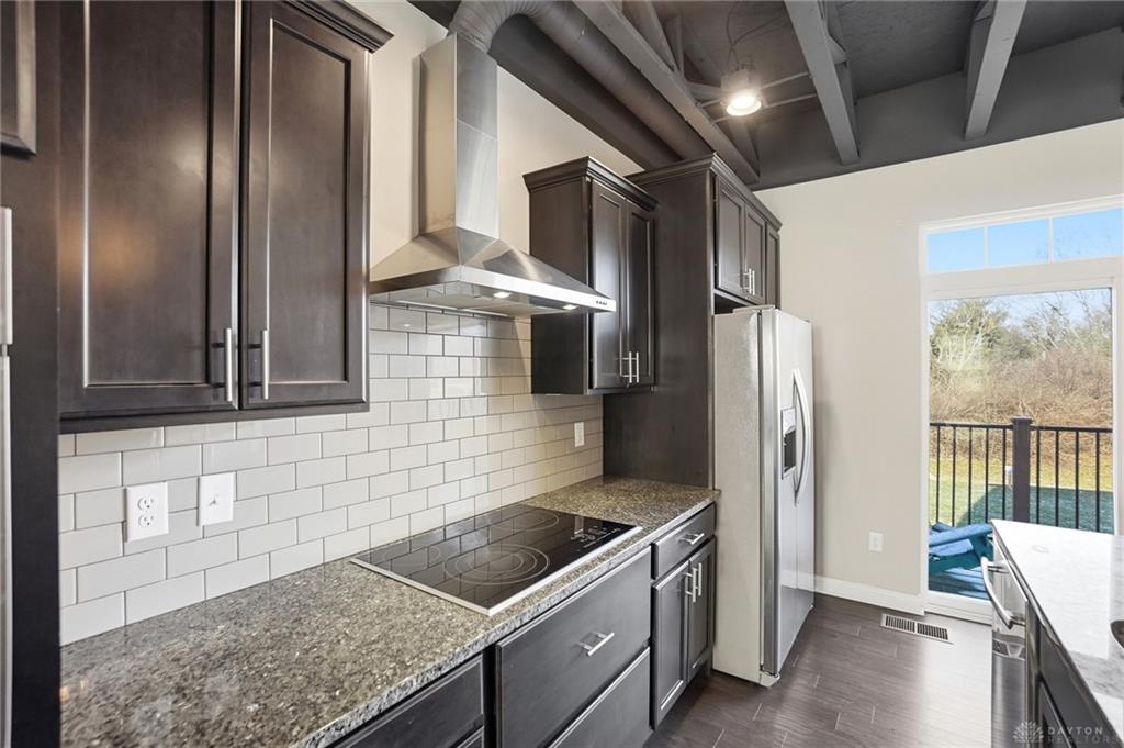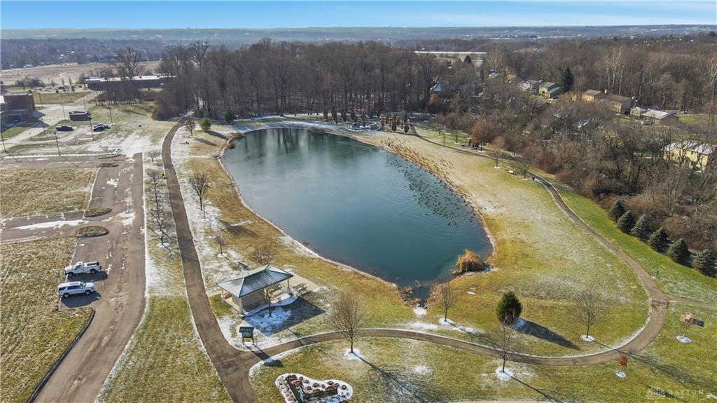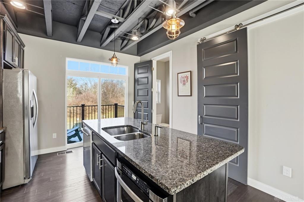 Discover elevated living in this highly sought after end unit brick condo, where refined design and modern comfort come together in a truly sophisticated setting. Dramatic architectural elements create an impressive first impression, including an exposed brick feature wall, open truss ceilings approximately nine feet high, abundant natural light from oversized windows, and rich wood flooring that sets a warm and luxurious tone throughout. The gourmet kitchen feels like a true culinary retreat, finished with granite countertops and high end Jenn Aire appliances. A spacious bar area offers the perfect setting for entertaining and flows beautifully toward the patio doors that open to the private second floor balcony overlooking the community pond. It is an ideal spot to unwind, sip wine, or host friends while enjoying the peaceful view. The elegant owners suite provides a serene escape, complete with a generous walk in closet thoughtfully outfitted with built in storage to maximize organization and function. The ensuite bath features a dual sink granite vanity and a beautifully finished walk in shower, creating a spa inspired experience right at home. A versatile bonus room offers the flexibility of a private office or an additional bedroom depending on your needs. With more than thirty nine thousand dollars in carefully selected upgrades, the quality and craftsmanship throughout this home are truly impressive. This luxury, walkable community places you moments from boutique shopping and dining at Village Park, with additional destinations nearby at Marketplace at Settlers Walk and Austin Landing. Gardner’s Park is just across the street with a scenic walking path and tranquil pond. Convenient access to I75 and I675 allows easy travel to both Cincinnati and Dayton, making this an exceptional place to call home.