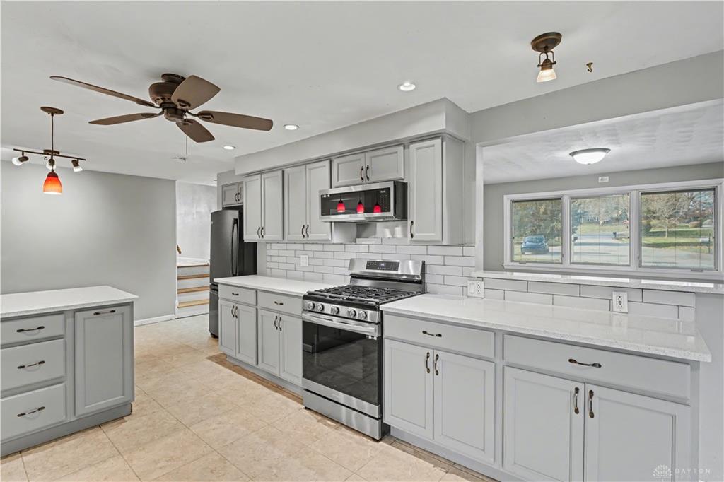 Welcome to 300 Heidi Court, Dayton, OH 45459, a beautifully remodeled brick tri-level single-family home tucked away on a quiet cul-de-sac in desirable Washington Township. Offering 2,423 square feet of thoughtfully updated living space, this home blends classic construction with modern upgrades throughout. The heart of the home is the fully remodeled chef’s kitchen, featuring a major renovation that created a larger, brighter open-concept layout. Highlights include sparkling quartz countertops, a pantry cabinet, stainless steel gas range, tile flooring, stylish backsplash, and French doors leading to the deck, perfect for indoor-outdoor entertaining. Recent improvements include a new furnace (2019), new tankless water heater (2025), hardwood flooring on the upper level, tile on the main level, and fully remodeled bathrooms. A standout feature is the family room addition with cathedral ceilings and new skylights (2024), flooding the space with natural light and creating a warm, inviting atmosphere. The finished basement offers flexible space ideal for family activities, a home gym, or entertaining. Outside, enjoy a large deck overlooking a park-like setting, a small fenced area, spacious yard, established garden, and fire pit—perfect for relaxing and enjoying nature. The exterior is maintenance-free with brick and vinyl siding, plus numerous updates including a new roof (April 2018), front door (2018), fencing, shutters, and more. A spacious two-car garage completes the package. Conveniently located near Wright-Patterson Air Force Base, shopping, dining, and served by Centerville City Schools, this home offers an exceptional combination of location, updates, and lifestyle. This is a truly special home with a wonderful large lot, a quiet established neighborhood, abundant nature, and spaces designed to be enjoyed for years to come.