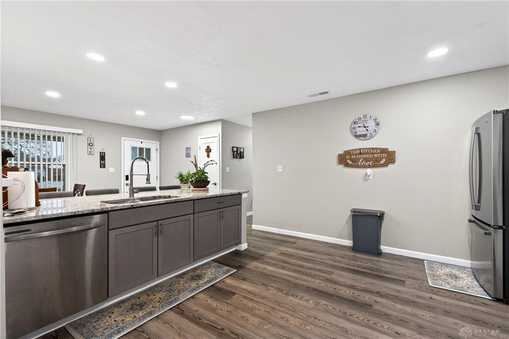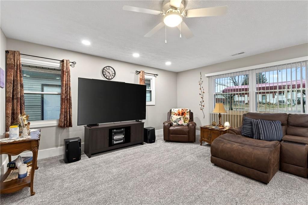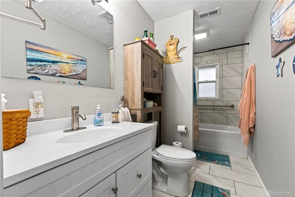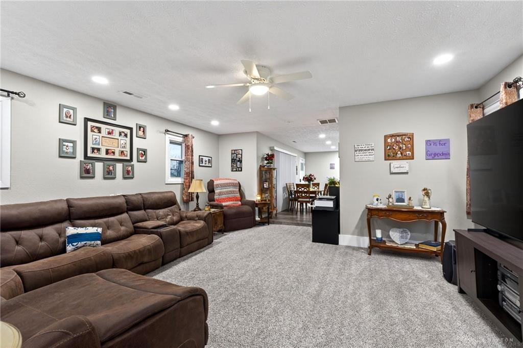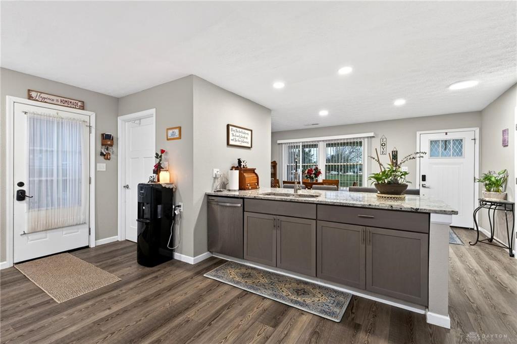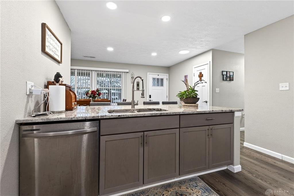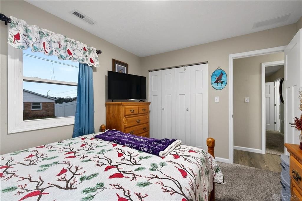 This beautifully remodeled ranch offers over 1,600 square feet of thoughtfully updated living space and is truly move-in ready. Nearly every area of the home has been refreshed within the last three years, including new HVAC, new windows, a fully renovated kitchen, updated bathrooms, and flooring throughout, creating a modern yet welcoming feel. The heart of the home is the stunning kitchen, featuring granite countertops, stainless steel appliances, and a large center island—perfect for entertaining or everyday living. Luxury vinyl plank flooring flows seamlessly through the kitchen, dining area, hallway, and bathrooms, while plush carpeting adds comfort to the living room and bedrooms. Enjoy outdoor living from the covered front porch or relax on the patio tucked into a private courtyard-style setting, ideal for morning coffee or evening gatherings. Recent exterior updates also include an extended driveway with a concrete walkway along the side of the home, enhancing both convenience and curb appeal. Additional highlights include a 2-car garage, new vinyl privacy fence, and a new storage shed. The home is ideally located with easy access to I-675, I-70, Route 4, and Wright-Patterson Air Force Base, making commuting simple and efficient. With nothing left to do but move in, this home offers the perfect combination of style, comfort, and peace of mind. Don’t wait—this one will not last.