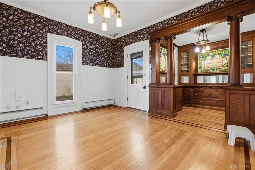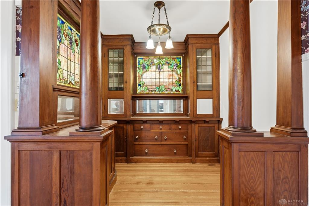 This grand estate was originally built by a local doctor and has all the quality that money affords. Extra tall ceilings, beautiful inlaid wood flooring, a stately butlers pantry, original woodwork and beautiful stained glass windows, along with ornate archway woodwork. Holding its original charm, this home offers many modern updates. An added first floor full bath, huge remodeled kitchen with granite counter tops, full roof replacement in 2014, gutter guards in 2021. Floors have been recently refinished and the house freshly painted. Upstairs, you will find a MASSIVE bathroom with walk in closet and 2 generously sized bedrooms. Outside, you will find 1 car heated garage with workshop space and electricity (in addition to the original carriage house in the back yard that can house 2+ more cars! Perfect for a car enthusiast!) and a beautiful covered patio in the back yard, with a covered walkway to the garage. A privacy fence was also added! Sit out on the expansive, columned front porch with your morning coffee and watch the world go by while you enjoy the breeze. This is truly a one of a kind home. 410 West Jefferson Street -- Welcome Home.