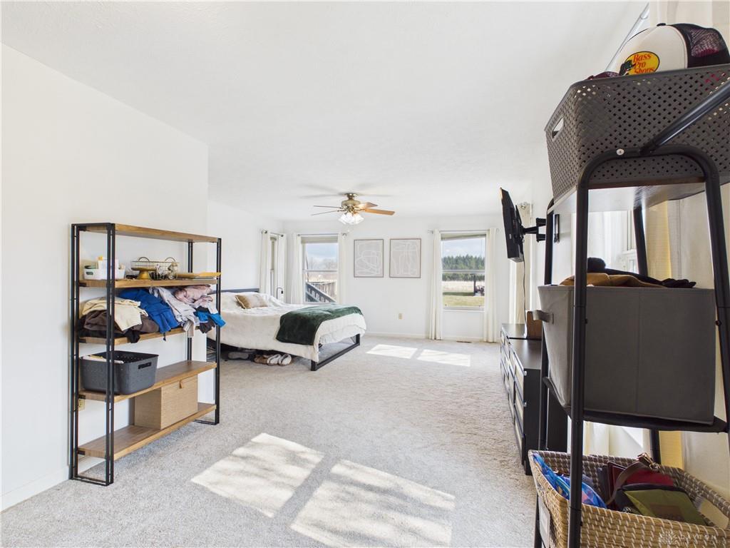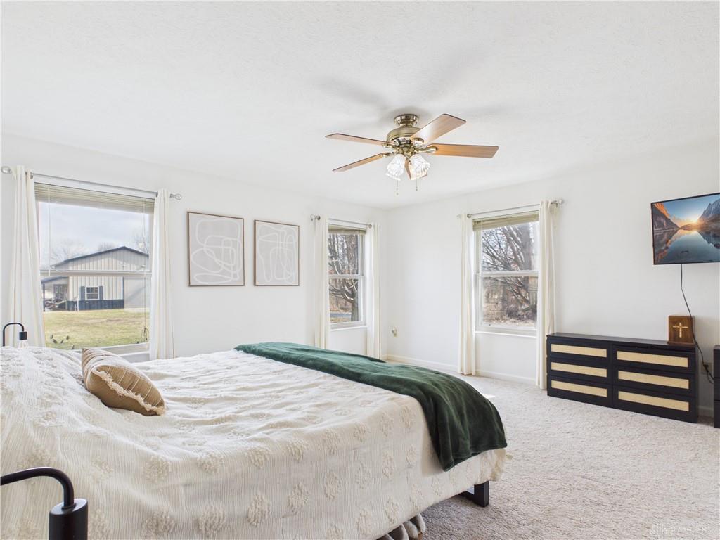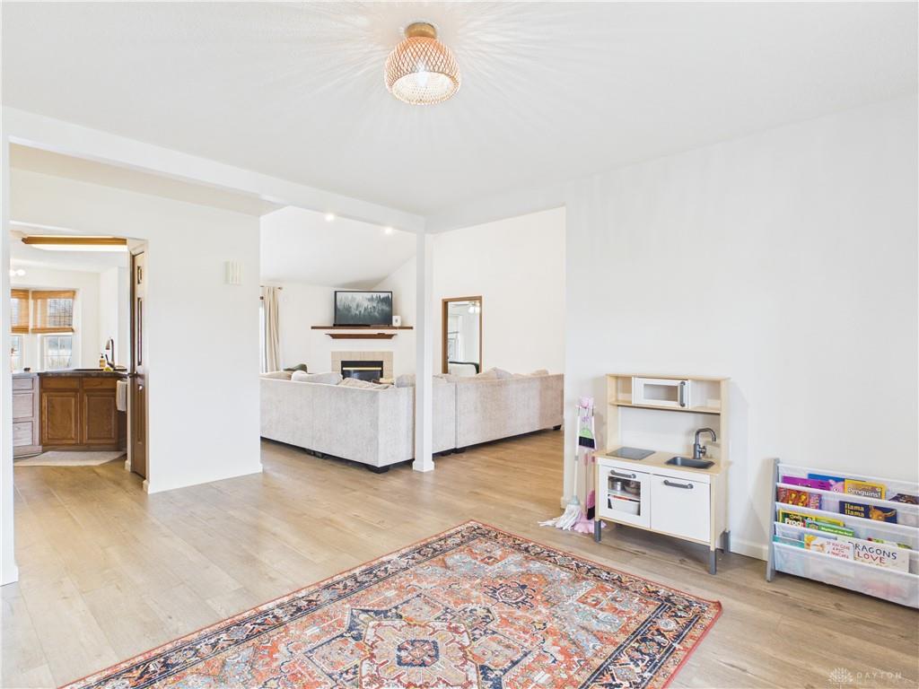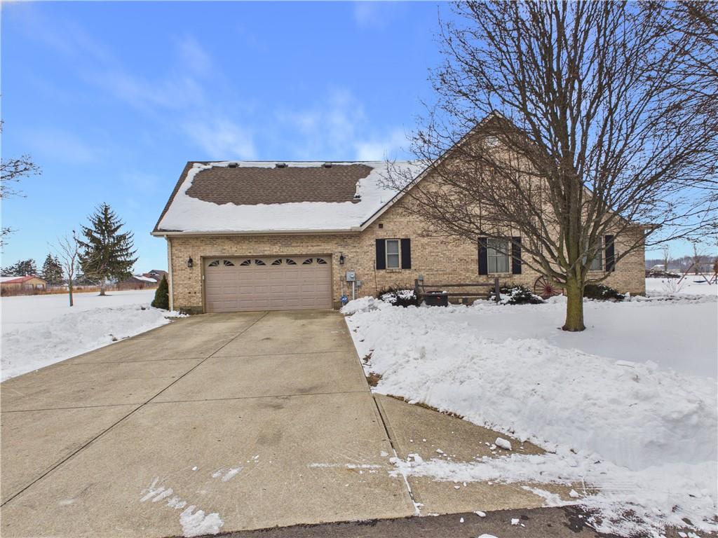 If you’ve been looking for the feel of country living with privacy, open space, and a manageable lot size, this well-maintained mostly ranch-style home with a 2nd story bonus room, situated on 1 level acre is the one you have been waiting for! Enjoy open space, scenic surroundings, and room to breathe—without the upkeep of larger acreage. Designed with comfort and functionality in mind, this home features an open-concept layout in the main living areas along with a desirable split-bedroom floor plan. An abundance of natural light fills the living room with cathedral ceiling and gas fireplace with insert, creating a warm and inviting gathering space. The kitchen offers bar seating, a breakfast nook, ample cabinetry, and newer appliances, with a formal dining room providing additional space for entertaining. The oversized primary bedroom includes a walk-in closet and a versatile additional area ideal for a sitting space or workout equipment, along with an en-suite bath featuring a walk-in tub/shower and soaking tub. Two additional bedrooms and a full bath complete the main level. Fresh paint and newer flooring throughout (LVP and carpet in 2022) enhances the interior with a refreshed feel. The finished bonus room upstairs adds valuable additional square footage—perfect for a rec room, study, hobby space, or extra storage. Step outside to enjoy quiet mornings on the covered front porch or relax on the back deck overlooking the yard—ideal for gardening, outdoor activities, or simply taking in the countryside views. The newly constructed pole barn (2024) with concrete flooring and electric provides excellent space for storage, equipment, workshop use, or hobbies. Additional features include a laundry room, extra-wide doorways, attic storage, and furnace and A/C (updated in 2018).