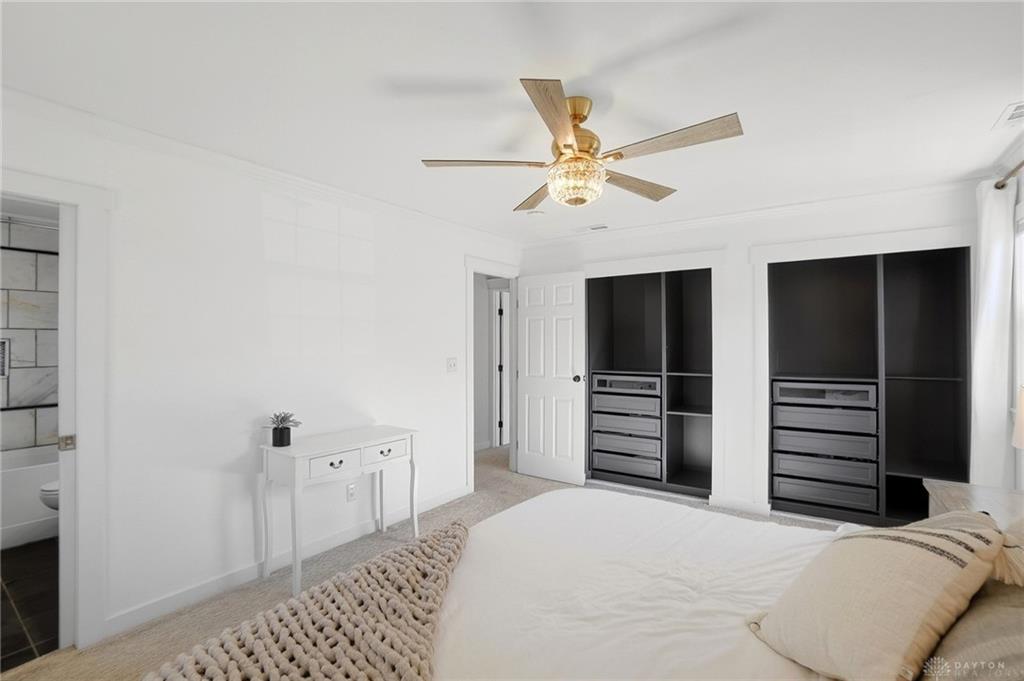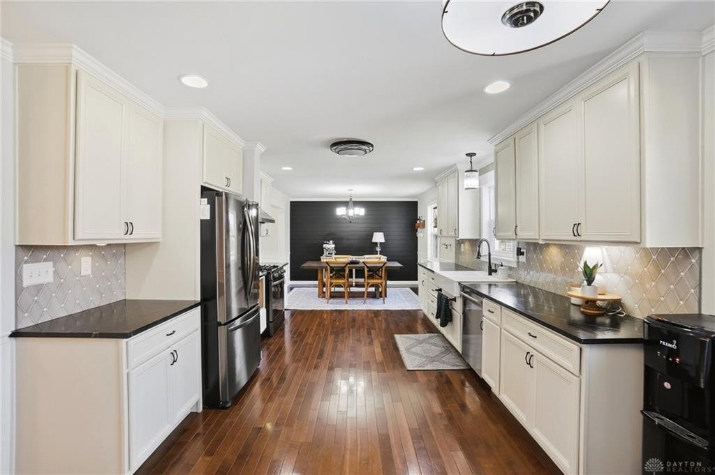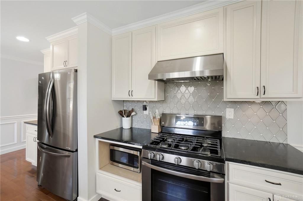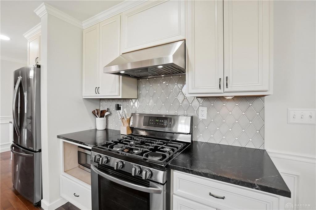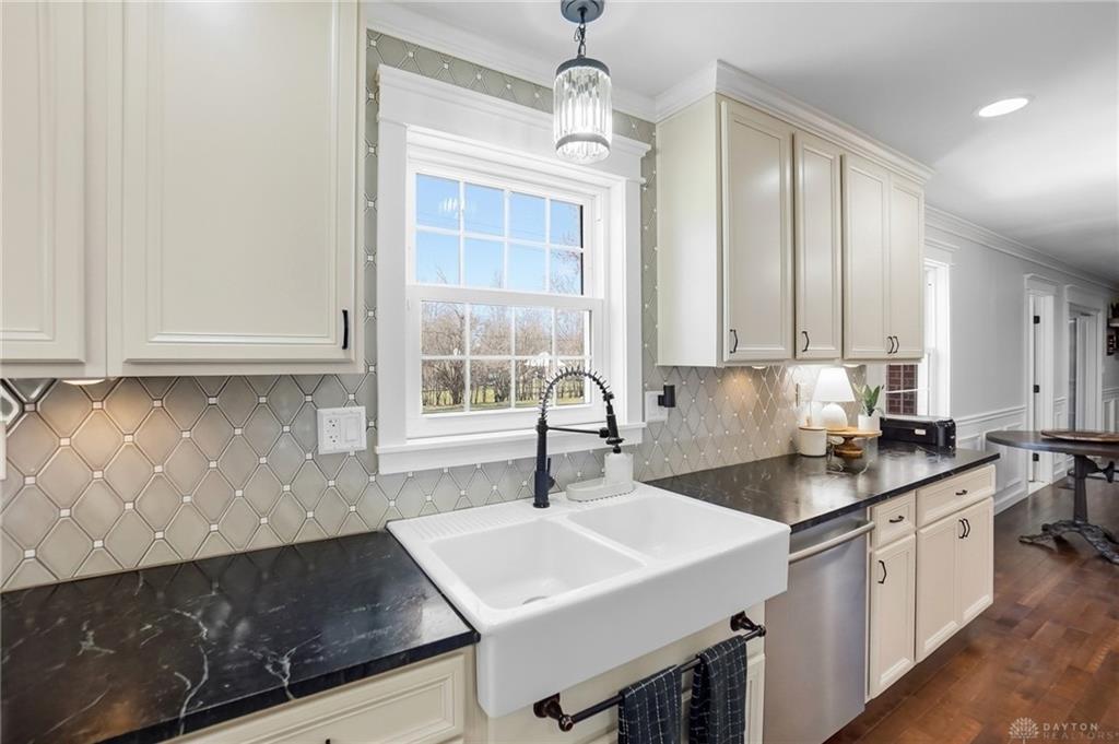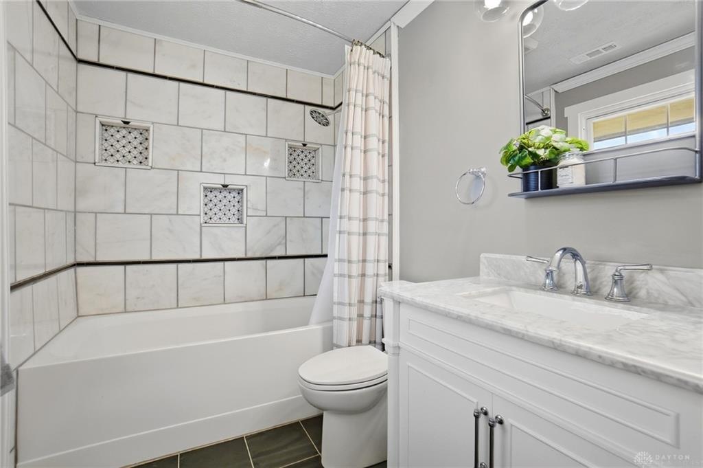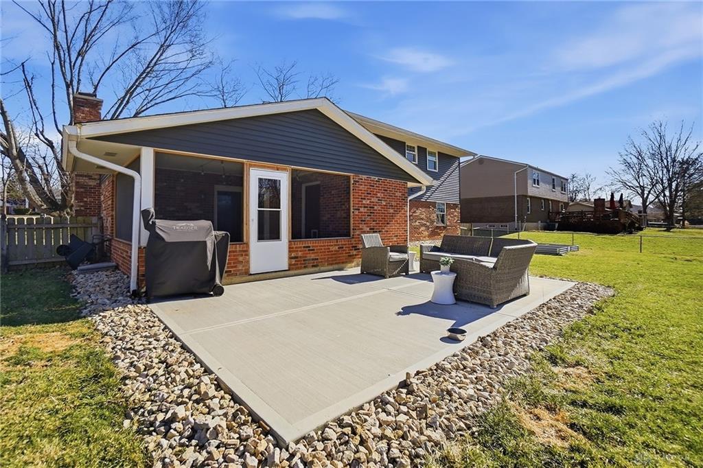 Welcome to this beautifully updated home ideally located in the heart of Centerville. Offering the perfect balance of elevated design and everyday convenience, this exceptional property is just minutes from shopping, dining, grocery stores, parks, and all the amenities that make Centerville one of the area’s most desirable communities. Situated within the award-winning Centerville City SD, and close to Weller Elementary, the location is simply unmatched. Inside, the home showcases a timeless, sophisticated aesthetic. The open-concept layout features updated flooring throughout, creating a seamless flow between living spaces. At the heart of the home, the fully remodeled kitchen is both stunning and functional, featuring striking soapstone countertops, black stainless steel appliances, a gas range, and a classic white farmhouse sink. Designed for both entertaining and everyday living, this space blends warmth and elegance. The bathrooms have been meticulously remodeled with high-end tile work and curated finishes, delivering spa-inspired comfort with enduring style. The primary suite is elevated by custom-built closet systems that offer both beauty and organization. Recent enhancements continue to add value and peace of mind, including new insulation throughout the home for improved efficiency and comfort, as well as brand-new exterior siding installed in 2025. Outdoor living is equally impressive. A screened-in rear covered patio creates the perfect setting for quiet mornings or relaxed evenings, while the expansive newly installed concrete patio extends the entertaining space into the beautifully sized backyard. Inside, designer touches such as the shiplap accent wall in the dining area and statement wallpaper in the front entry add character and charm. With its extensive updates, refined finishes, and prime location, this residence offers a rare opportunity to own a truly move-in-ready home where craftsmanship, comfort, and convenience come together seamlessly.