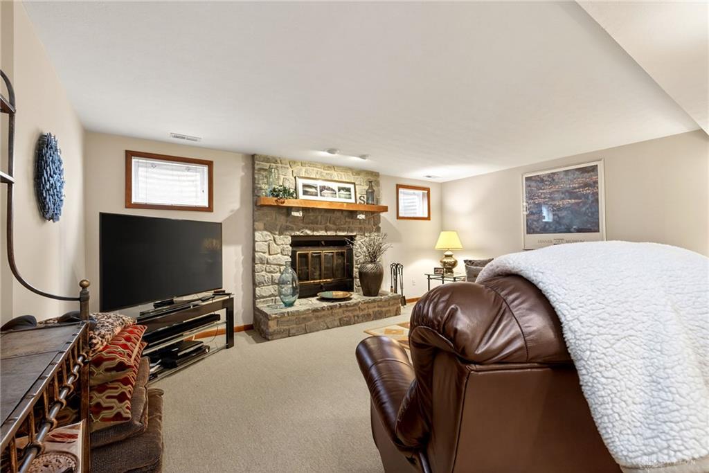 Nearly 3,500 finished sqft offered by this spacious and beautifully maintained 3 (potentially 4) bedroom, 3.5 bath home. From the moment you enter, you’re welcomed by a bright foyer and an inviting layout designed for both everyday living and entertaining. The main living area features soaring vaulted ceilings, abundant natural light, and a stunning stone fireplace that creates a warm and open atmosphere. The updated kitchen (2010) offers ample cabinetry, granite countertops, stainless steel appliances, and a large island, flowing seamlessly into the breakfast area and overlooking the backyard. The upstairs primary suite is a true retreat with a spacious layout and a beautifully remodeled en-suite bath (2015) featuring dual vanities and a walk-in shower. Two additional generously sized bedrooms and a full hall bath also on the second floor. The finished lower level expands your living space with a large rec area with a cozy fireplace, a finished bonus room (potential 4th bedroom), third full bath, and plenty of storage. Step outside to enjoy the expansive deck (repainted and repaired in 2021) and large backyard—perfect for outdoor gatherings or quiet evenings at home. Additional updates include a newer water heater (2021), garage door (2019), roof (2011), and more!