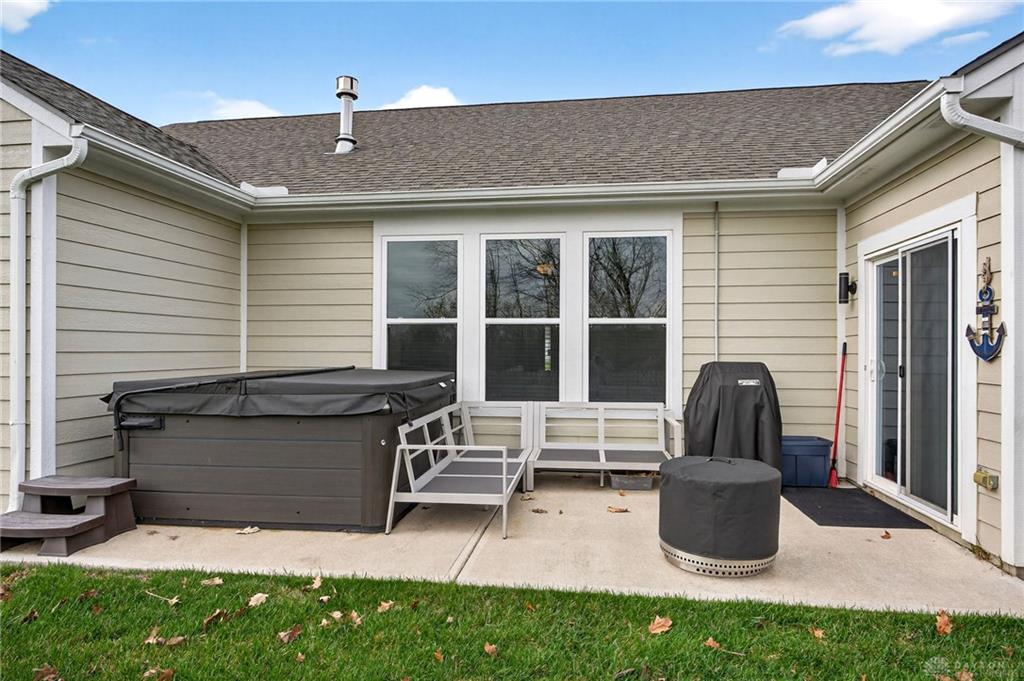 Welcome home to this gorgeous 3 bed, 2 bath gem in Washington Trace—where low-maintenance living meets modern comfort. Built just 5 years ago, this home offers the peace of mind of newer construction, priced below the cost of building new. Step inside to a bright and inviting layout featuring a spacious island kitchen and sunny breakfast nook, perfect for slow mornings or gathering with friends. The living room is designed for comfort and connection with a cozy fireplace and built-in surround sound. Out back, you’ll find your own private retreat—a quiet patio complete with a 4-person Viking hot tub that conveys with the home. Whether you're unwinding at the end of the day or hosting a small get-together, this space is ready for it. Additional features include a security system and an underground invisible fence with transmitter and two collars included—perfect for peace of mind inside and out. Enjoy the ease of HOA living with lawn care and snow removal handled for you, plus access to a clubhouse, pool, and play area. This is the kind of home that truly lets you settle in and enjoy.