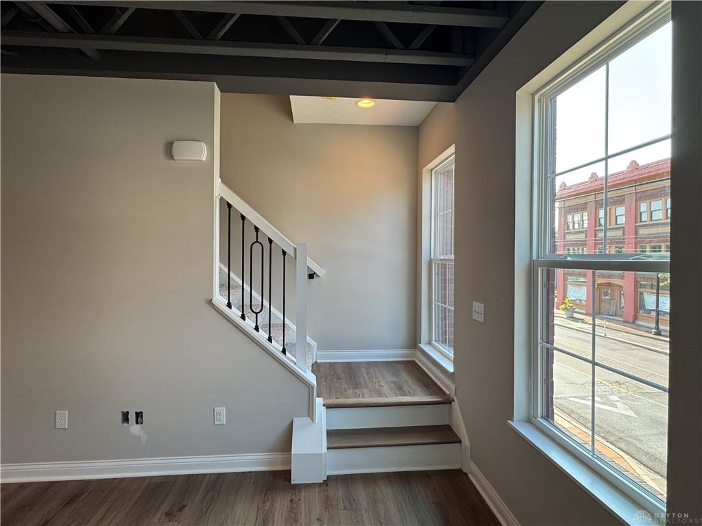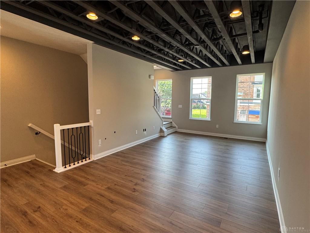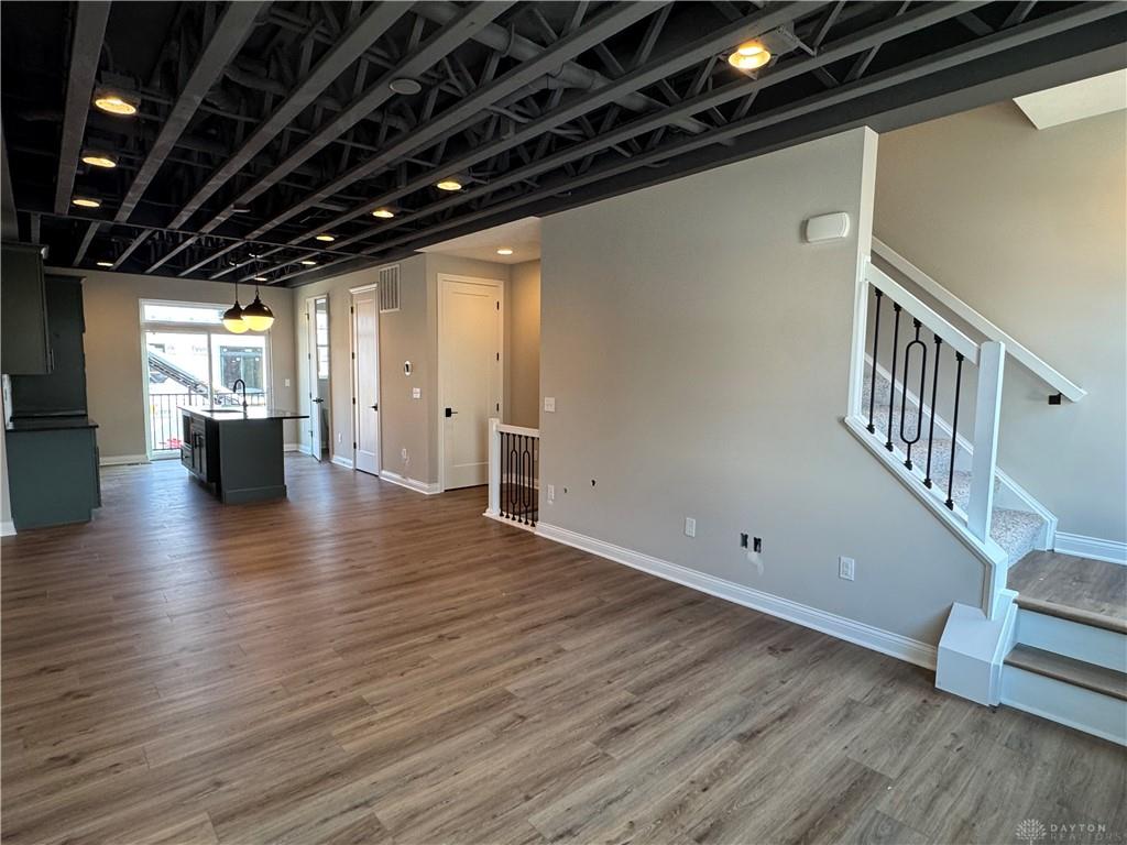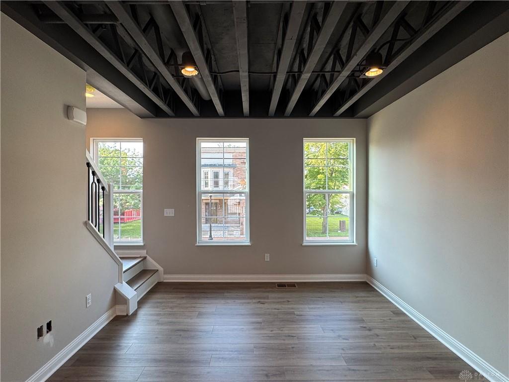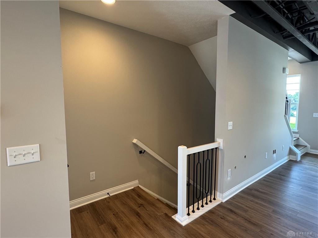 Move in ready home! This brand-new community, by Charles Simms Development, is situated in the vibrant Wright Dunbar neighborhood. As you enter through the elegant ¾ glass front door, you’ll find yourself in the foyer, which leads to the main living area with stained stairs that match the luxury vinyl plank flooring in foyer and entire main level. The home boasts a stunning 9-foot open truss ceiling and kitchen equipped with a spacious island, high-quality Moen plumbing fixtures, a range, a dishwasher, and an over-the-range microwave, all included. Tiled backsplash to ceiling with vented SS range hood and microwave drawer. Adjacent to the kitchen, a sliding glass door opens onto a composite deck, perfect for enjoying your morning coffee or unwinding in the evening. Also on this level are a convenient powder room, a coat closet, and a generous pantry. The living room is designed with ample can lighting and features a TV wall pre-plumbed for a future gas fireplace. As you ascend to the main bedroom, take note of the oversized low-E windows that flood the space with natural light. This home includes two additional bedrooms, each with ensuite bathrooms. The main bathroom showcases a spacious tiled shower with a glass swing door, a comfort-height vanity, walk-in closet, and stylish tiled floors. The guest bedroom offers a full bath equipped with a tub/shower surround and a well-sized closet with a window. All bedrooms and the living room are fitted with point-to-point Ethernet connections, along with various built-in smart home features. Be sure to ask about our Simms tech home offerings! The Townes at Wright Dunbar will include 26 three-story townhomes, each with an attached two-car insulated garage and the option for a one-car garage in addition to a large bonus room on the lower level, bringing the total square footage w/ bonus to 1,502. 1 year workmanship builder warranty and 10 year structural warranty. 15 year - 100% property tax abatement. Pay tax on land only