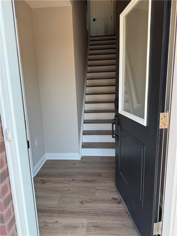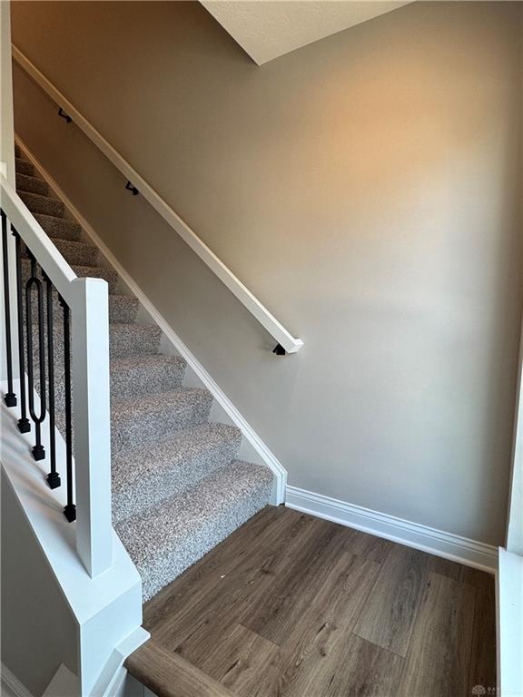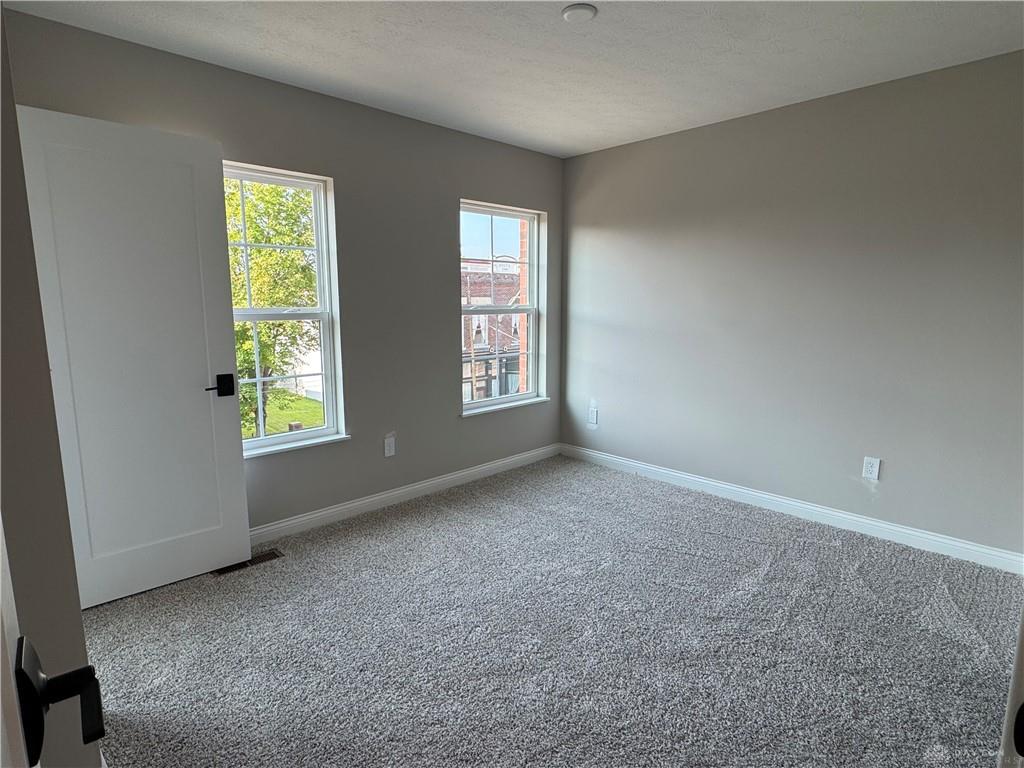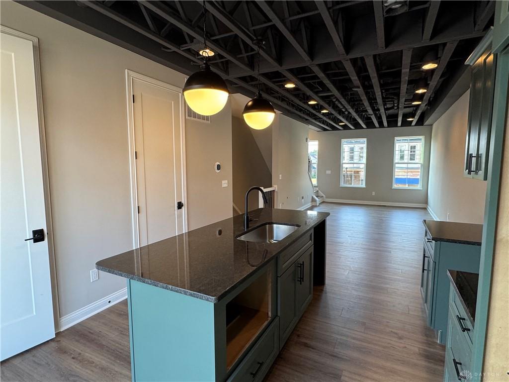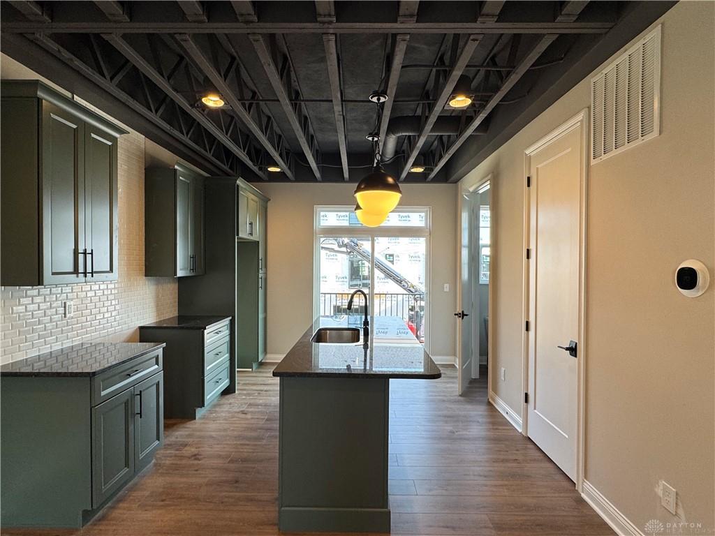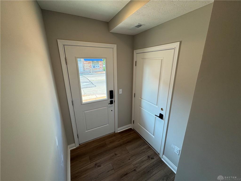 Move in ready home! This brand-new community, by Charles Simms Development, is situated in the vibrant Wright Dunbar neighborhood. As you enter through the elegant ¾ glass front door, you’ll find yourself in the foyer, which leads to the main living area with stained stairs that match the luxury vinyl plank flooring in foyer and entire main level. The home boasts a stunning 9-foot open truss ceiling and kitchen equipped with a spacious island, high-quality Moen plumbing fixtures, a range, a dishwasher, and an over-the-range microwave, all included. Tiled backsplash to ceiling with vented SS range hood and microwave drawer. Adjacent to the kitchen, a sliding glass door opens onto a composite deck, perfect for enjoying your morning coffee or unwinding in the evening. Also on this level are a convenient powder room, a coat closet, and a generous pantry. The living room is designed with ample can lighting and features a TV wall pre-plumbed for a future gas fireplace. As you ascend to the main bedroom, take note of the oversized low-E windows that flood the space with natural light. This home includes two additional bedrooms, each with ensuite bathrooms. The main bathroom showcases a spacious tiled shower with a glass swing door, a comfort-height vanity, walk-in closet, and stylish tiled floors. The guest bedroom offers a full bath equipped with a tub/shower surround and a well-sized closet with a window. All bedrooms and the living room are fitted with point-to-point Ethernet connections, along with various built-in smart home features. Be sure to ask about our Simms tech home offerings! The Townes at Wright Dunbar will include 26 three-story townhomes, each with an attached two-car insulated garage and the option for a one-car garage in addition to a large bonus room on the lower level, bringing the total square footage w/ bonus to 1,502. 1 year workmanship builder warranty and 10 year structural warranty. 15 year - 100% property tax abatement. Pay tax on land only