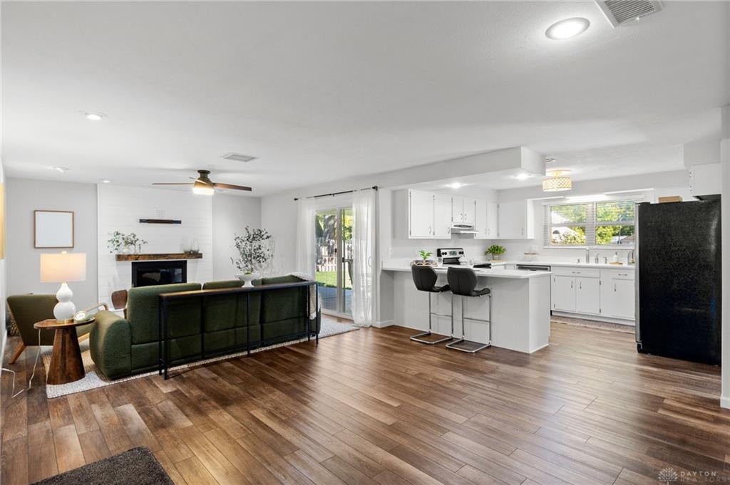 Welcome to 5324 Oakbrooke Drive, a beautifully maintained ranch home nestled in the desirable Oakcreek neighborhood of Kettering. This single-level residence combines classic mid-century charm with modern touches, offering convenient living in a tranquil, well-established setting. Meticulously maintained 4-bedroom, 2-bath ranch in sought-after Oakcreek! Featuring over 2,300 sq ft of living space, this home offers an open kitchen with stainless steel appliances and breakfast bar, a spacious family room, and luxury vinyl plank flooring throughout the main areas. Enjoy the outdoors with a fully fenced backyard, covered patio, and extended patio space—perfect for entertaining. Heated 21x25 garage with bonus storage/work room. Major updates include: furnace & A/C (2022), water heater (2020), skylights (2024), and newer exterior doors (2019–2020), Vent boots and fireplace flashing (2024). Located just minutes from Cornerstone shops, I-675, and Kettering schools. Move-in ready and full of charm—schedule your tour today!