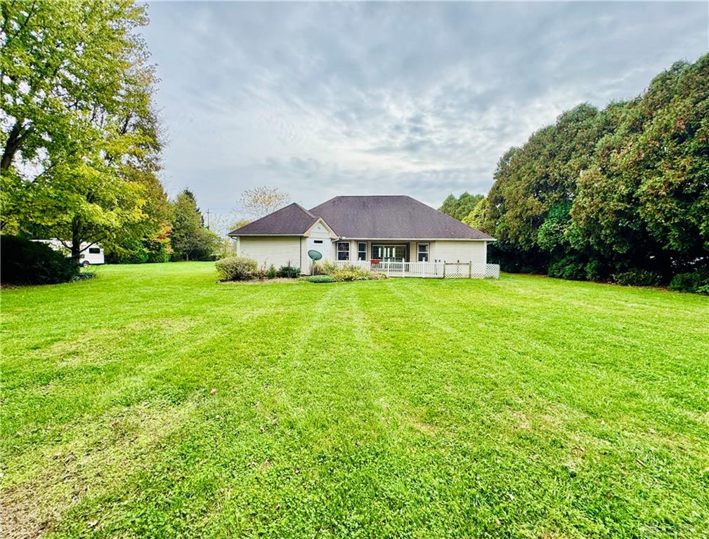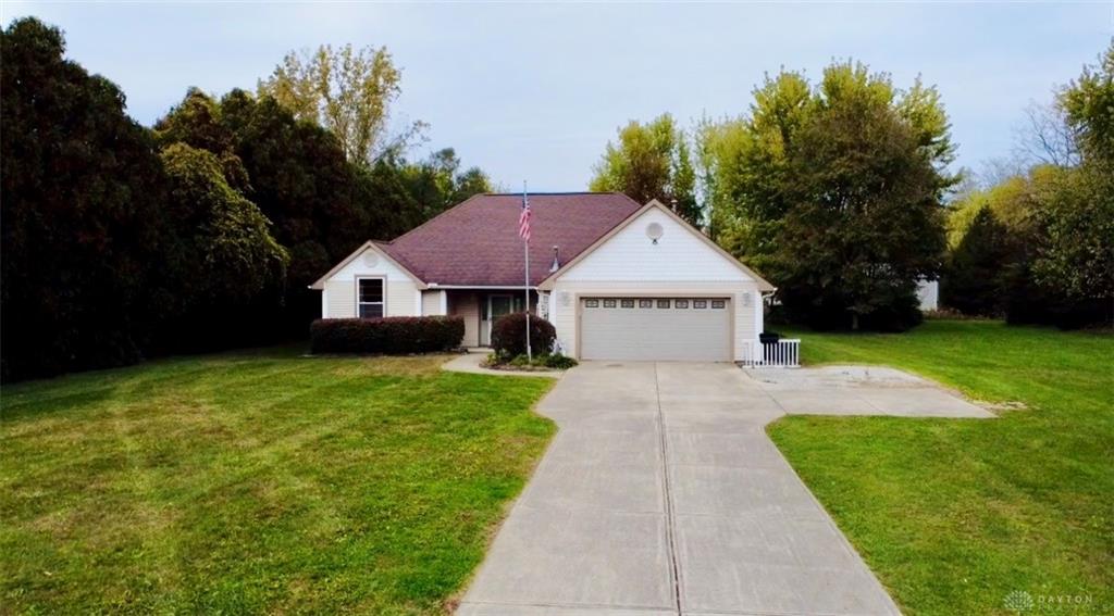 Welcome to your peaceful country retreat across from Sugar Isle Golf Course! This charming 3-bedroom, 2-bath ranch offers low-maintenance living with no steps and a convenient single-level layout built in 2003. Nestled just outside city limits, this home features an inviting open floor plan with vaulted ceilings in the spacious living room and abundant natural light. The kitchen offers ample cabinetry and counter space, perfect for everyday meals. Enjoy your morning coffee on the front porch with views of the golf course or relax & bird watch on the back patio surrounded by mature trees. Additional highlights include a 2-car attached garage, wide concrete driveway and easy-care vinyl siding. The setting provides a perfect balance of tranquility and accessibility—just minutes from Arrow Queen. If you’ve been looking for a move-in ready ranch with no stairs in a serene country setting, this is the one!