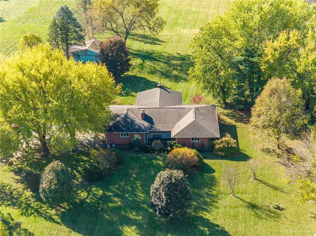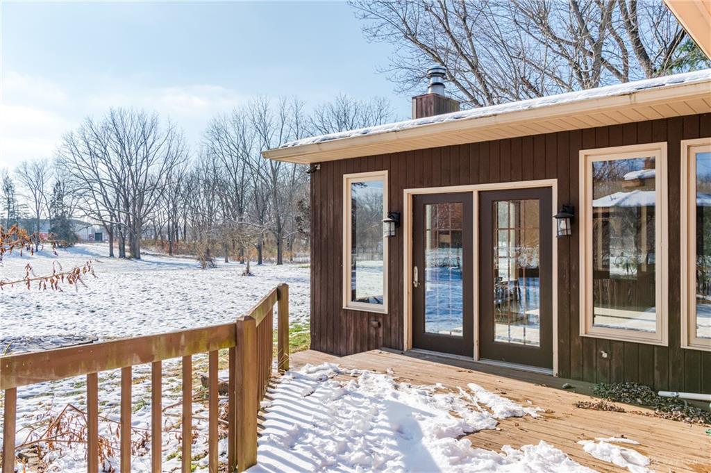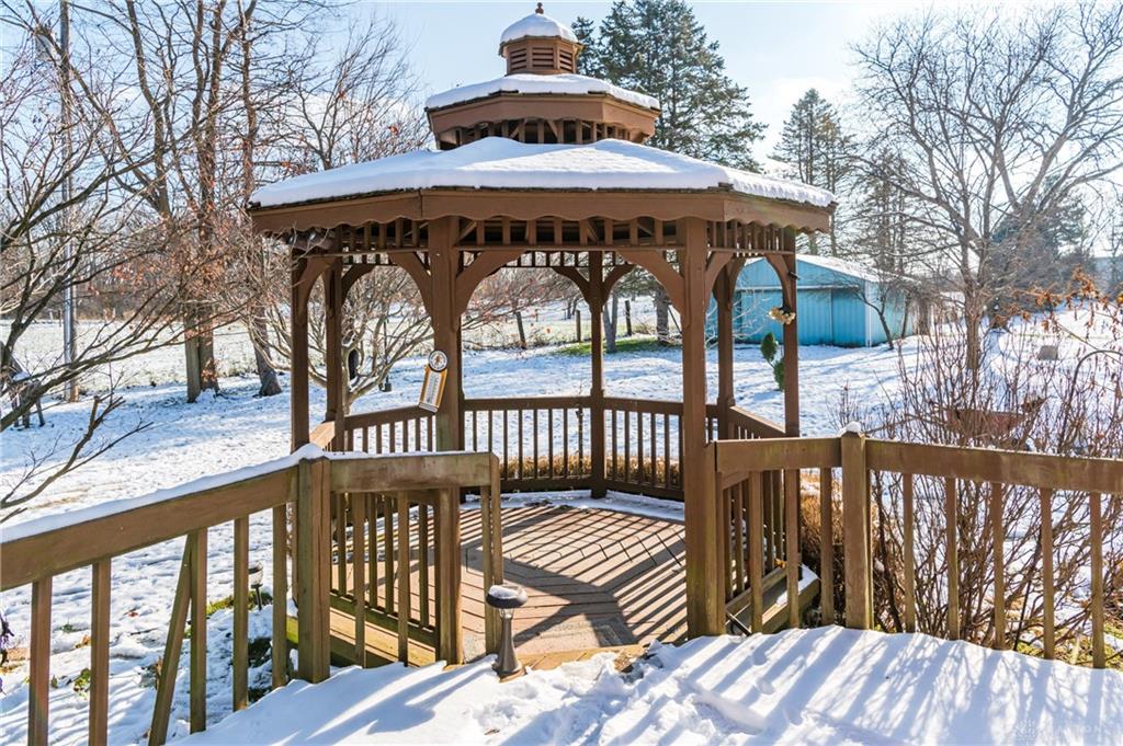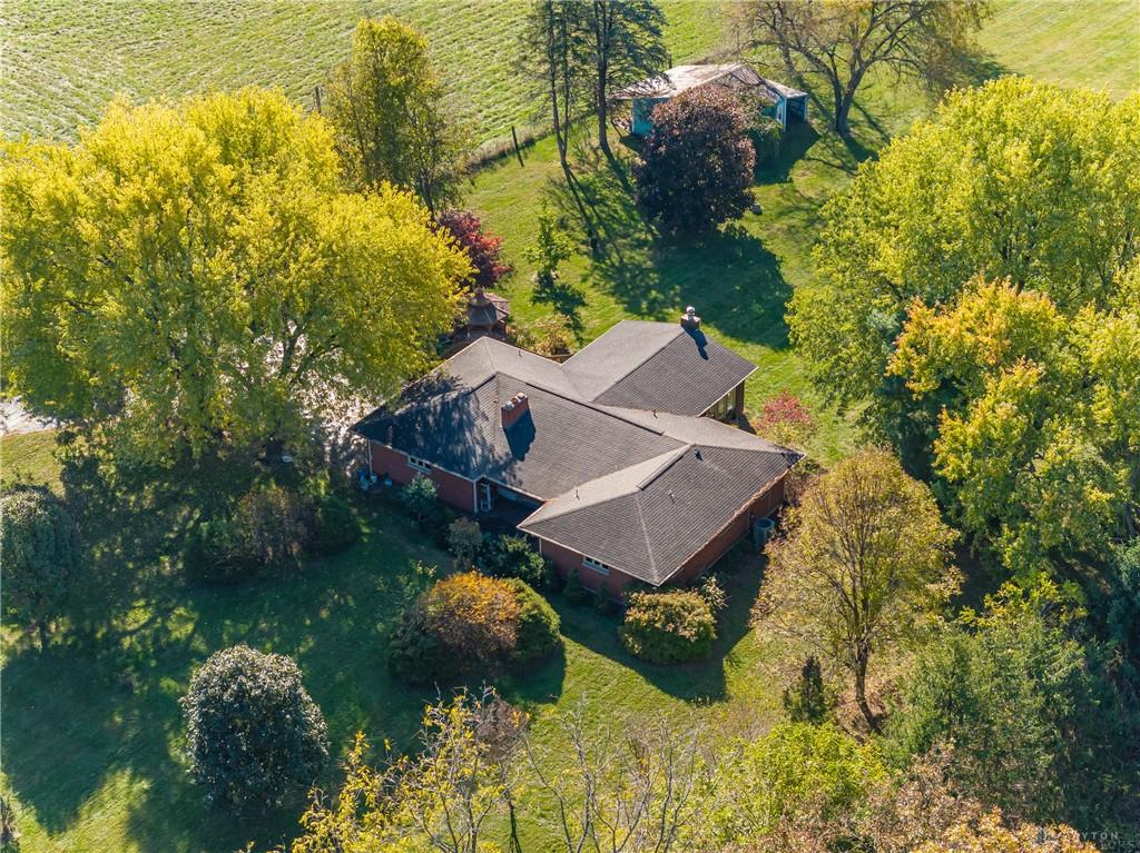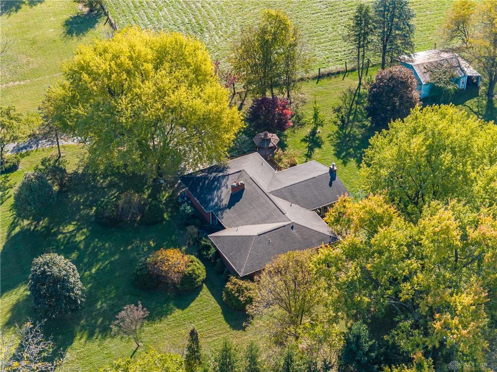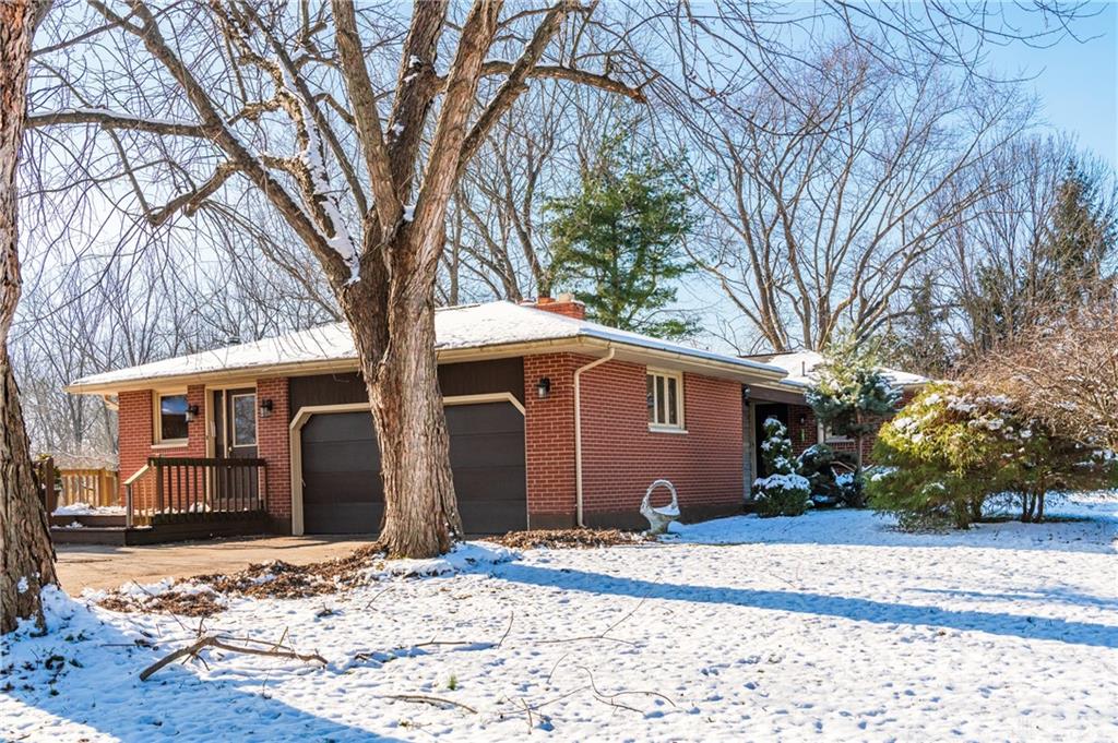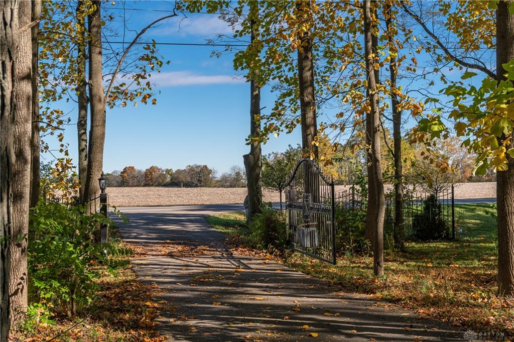 This beautiful, wooded property has Disney like appeal. A whimsical gate greets before you begin down the winding drive, across the bridge, past the gargoyles and deer (no seriously) to discover a charming 3-bedroom 2 bath home. This place is waiting for a prince or princess with a passion for fixer-uppers to love it back to life. Inside you will find beautiful wooden built-ins, custom cabinetry, original hard wood doors and trim, and the most breathtaking views overlooking your land. The enormous living room has access to the side patio and gazebo, perfect for entertaining! Nestled on over 5 acres of privacy, this as-is home is surrounded by flowering fruit trees and a mature tree line that puts on quite the show during the season change. A full basement with a large work room, 2 car garage, and a pole barn 30x24 give you plenty of storage space! Ready to become the King or Queen of a new castle? Please rely on your own measurements and note that this property does lie within 2 parcels of land, Miami and Montgomery county.