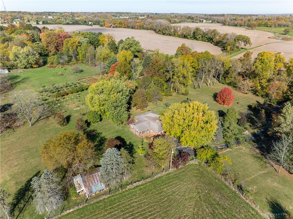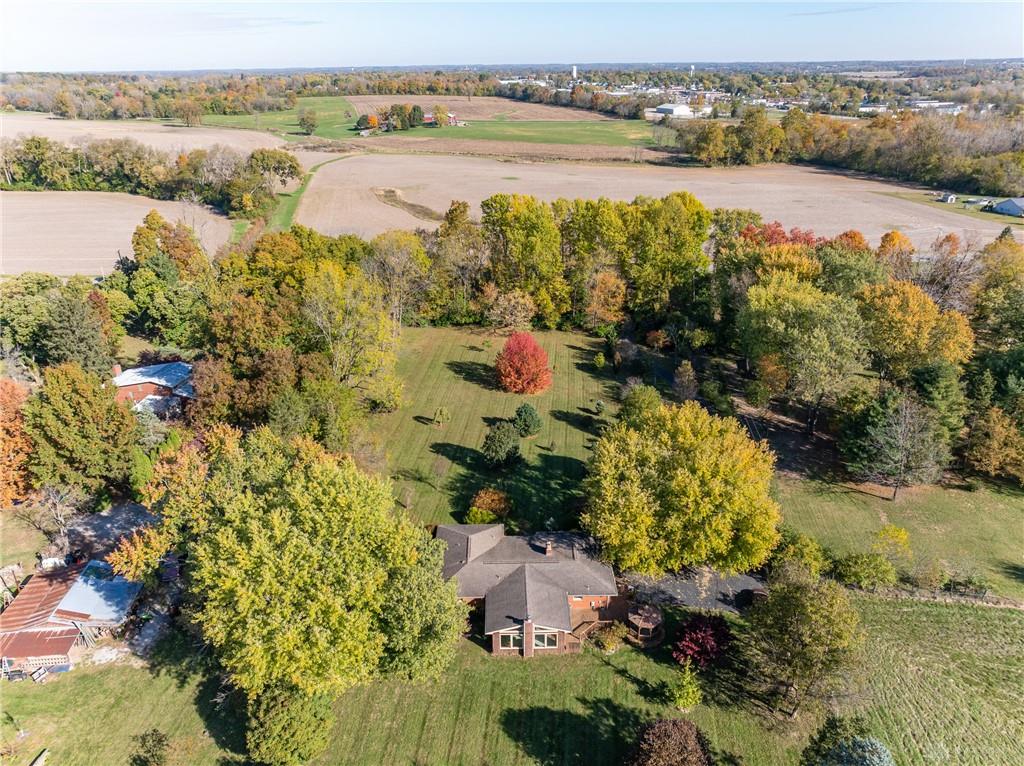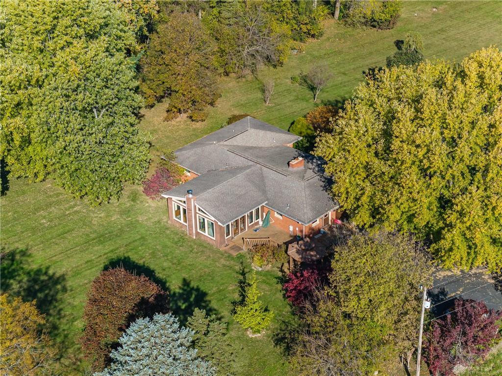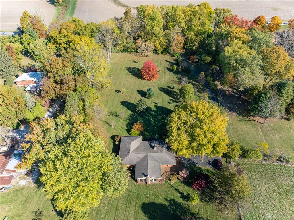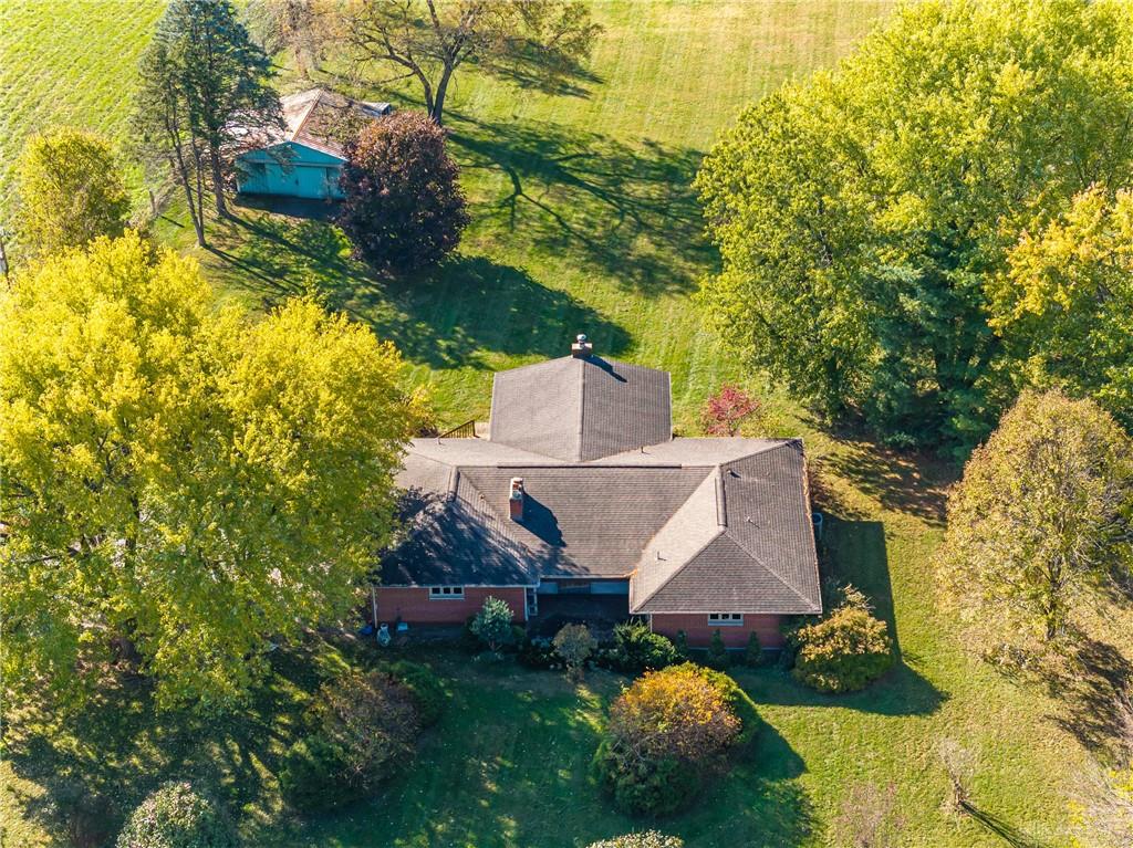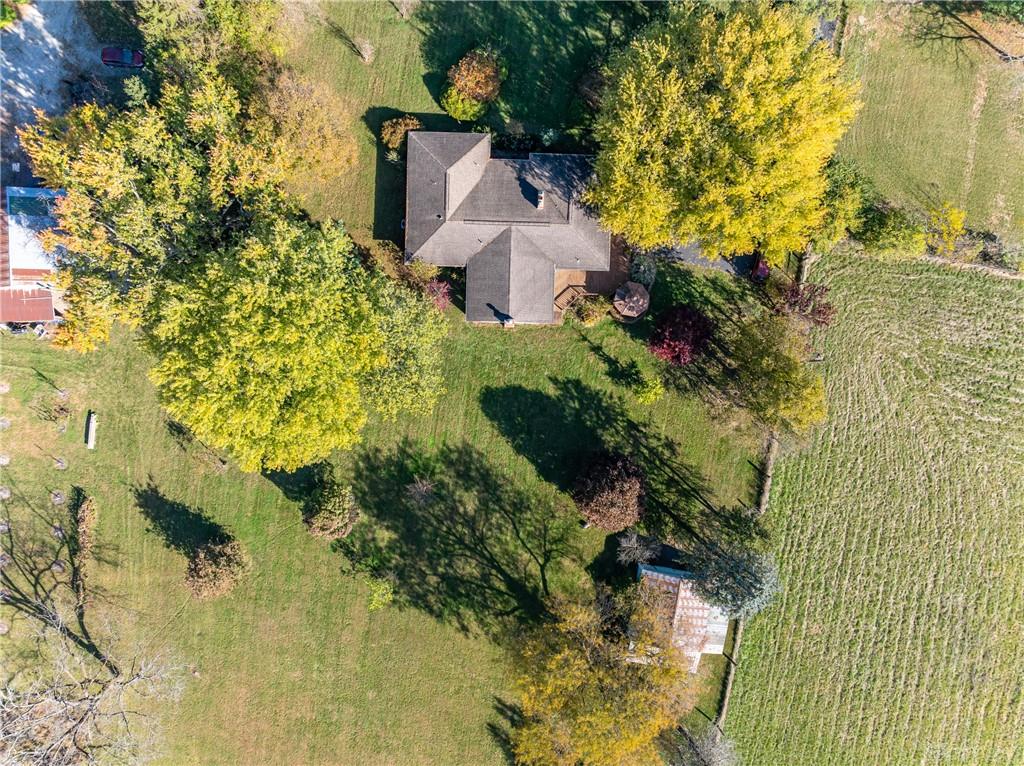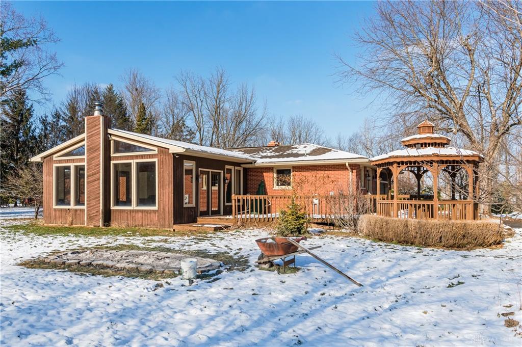This beautiful, wooded property has Disney like appeal. A whimsical gate greets before you begin down the winding drive, across the bridge, past the gargoyles and deer (no seriously) to discover a charming 3-bedroom 2 bath home. This place is waiting for a prince or princess with a passion for fixer-uppers to love it back to life. Inside you will find beautiful wooden built-ins, custom cabinetry, original hard wood doors and trim, and the most breathtaking views overlooking your land. The enormous living room has access to the side patio and gazebo, perfect for entertaining! Nestled on over 5 acres of privacy, this as-is home is surrounded by flowering fruit trees and a mature tree line that puts on quite the show during the season change. A full basement with a large work room, 2 car garage, and a pole barn 30x24 give you plenty of storage space! Ready to become the King or Queen of a new castle? Please rely on your own measurements and note that this property does lie within 2 parcels of land, Miami and Montgomery county.