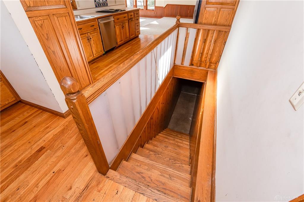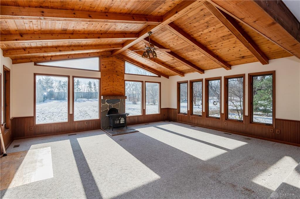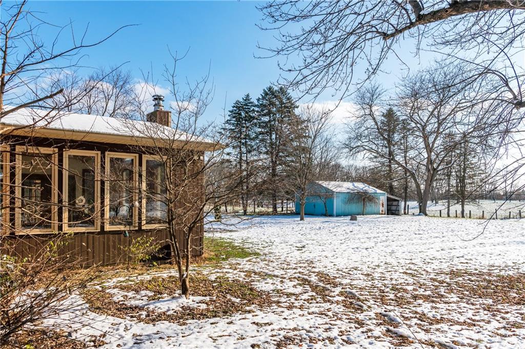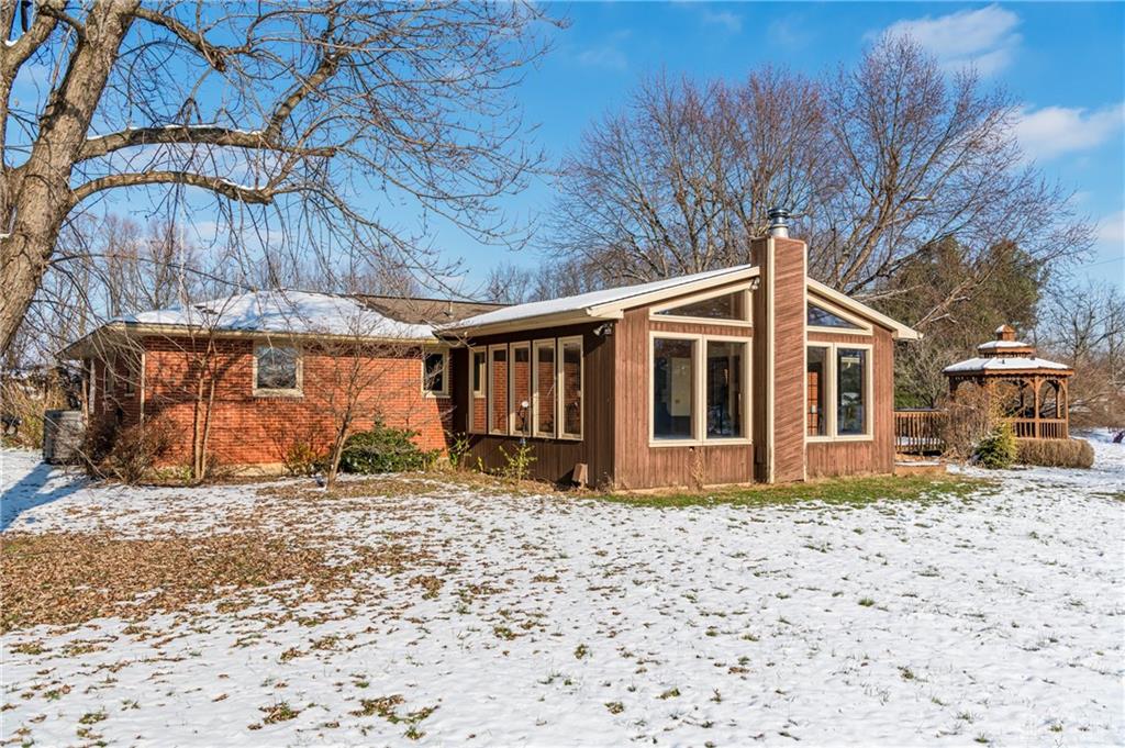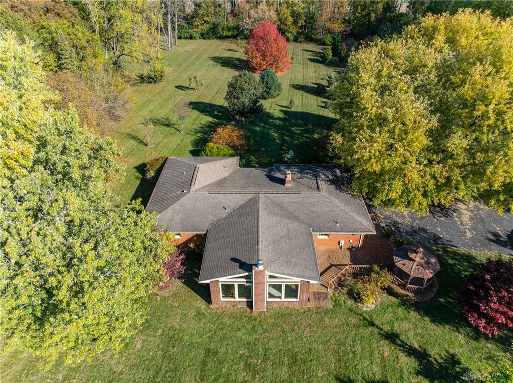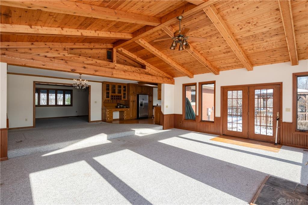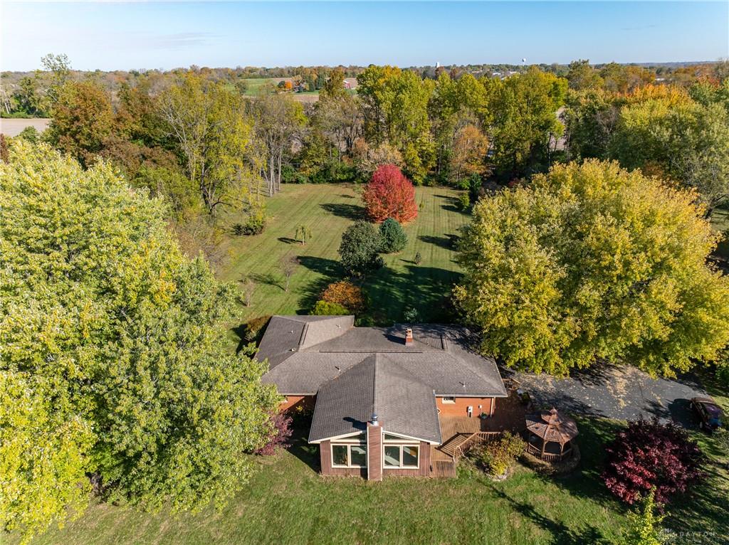 This beautiful, wooded property has Disney like appeal. A whimsical gate greets before you begin down the winding drive, across the bridge, past the gargoyles and deer (no seriously) to discover a charming 3-bedroom 2 bath home. This place is waiting for a prince or princess with a passion for fixer-uppers to love it back to life. Inside you will find beautiful wooden built-ins, custom cabinetry, original hard wood doors and trim, and the most breathtaking views overlooking your land. The enormous living room has access to the side patio and gazebo, perfect for entertaining! Nestled on over 5 acres of privacy, this as-is home is surrounded by flowering fruit trees and a mature tree line that puts on quite the show during the season change. A full basement with a large work room, 2 car garage, and a pole barn 30x24 give you plenty of storage space! Ready to become the King or Queen of a new castle? Please rely on your own measurements and note that this property does lie within 2 parcels of land, Miami and Montgomery county.