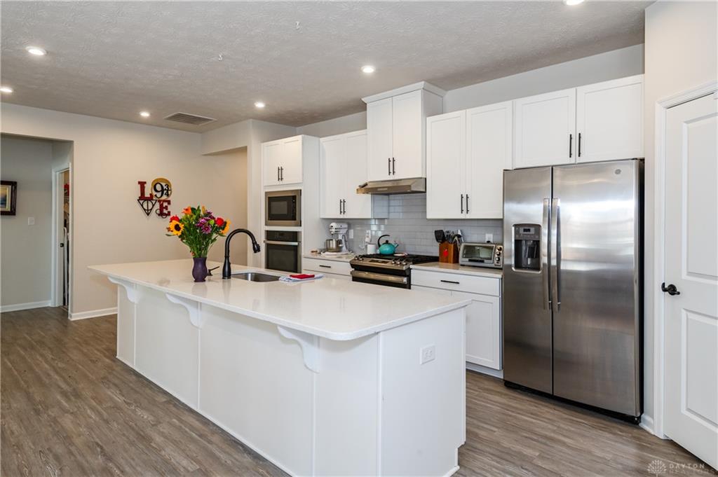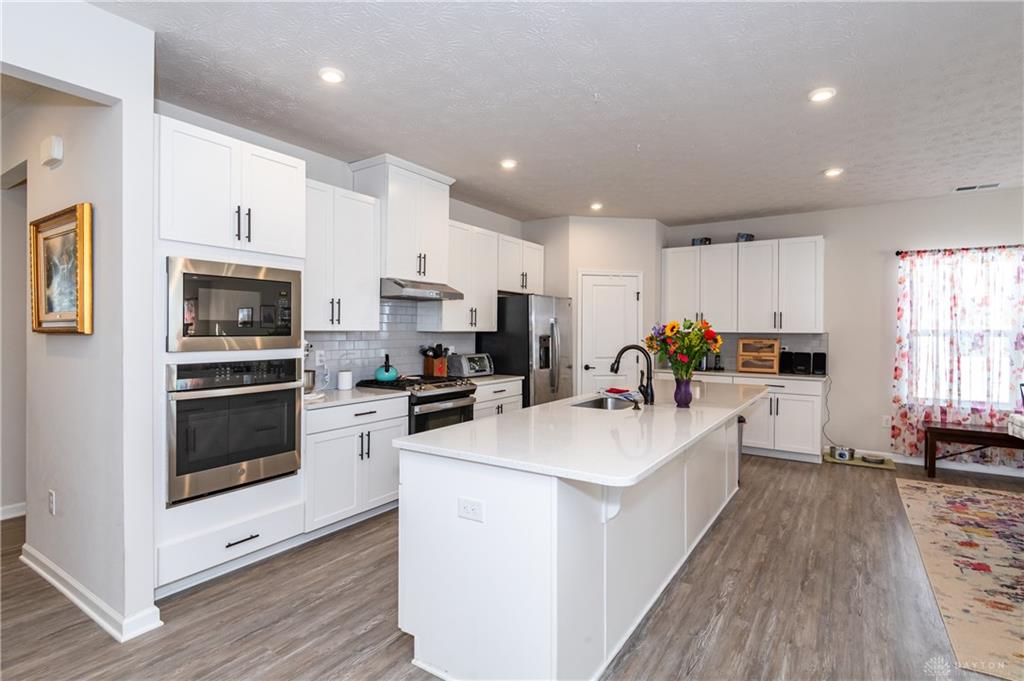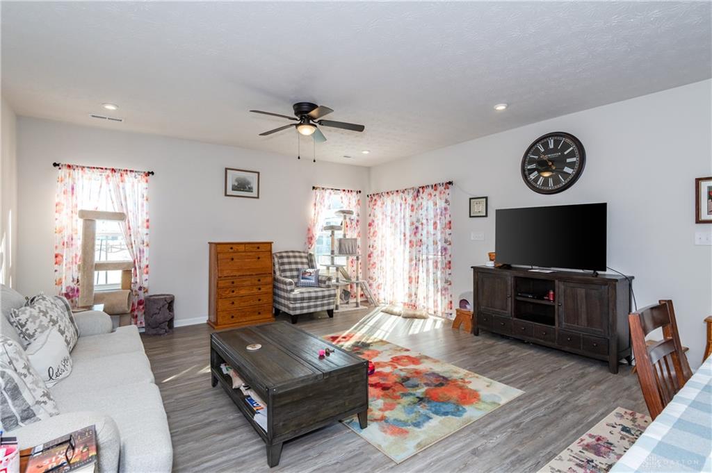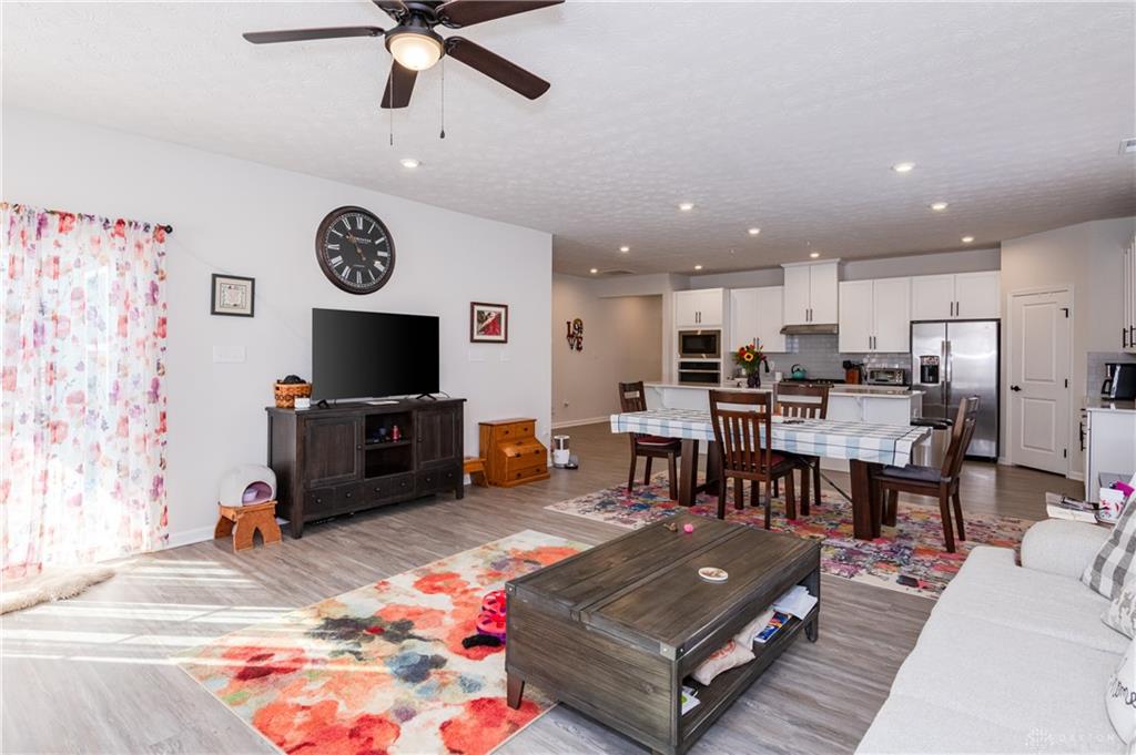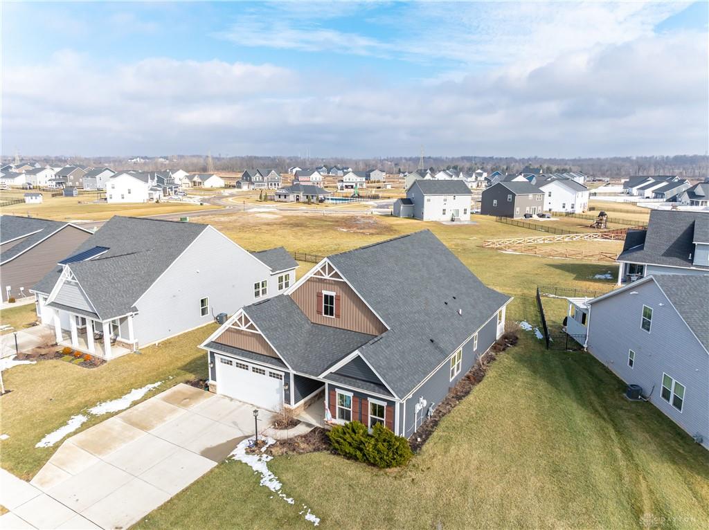 Welcome Home! Located in Nathaniels Grove, this newly constructed 3-bedroom, 2-bath ranch offers a thoughtfully designed open floor plan ideal for both everyday living and entertaining. From the moment you step inside, you’re welcomed by a spacious foyer that flows seamlessly into the heart of the home. The expansive kitchen is open to both the dining area and living room, creating a bright and inviting gathering space. Designed with functionality and style in mind, it features custom cabinetry, quartz countertops, tiled backsplash, gas range, large center island, spacious pantry, and abundant recessed and under-cabinet lighting. The primary suite provides a private retreat with an elegant tray ceiling and a well-appointed ensuite bath showcasing dual custom vanities and a large walk-in shower. Two additional bedrooms and a full hall bath with dual vanities offer comfort and convenience for family or guests. Outside, enjoy a professionally designed landscaping package and an additional parking pad for added flexibility. Residents of Nathaniel’s Grove have access to community amenities including a pool, basketball court, and playground. Conveniently located just minutes from WPAFB, shopping, dining, and everyday conveniences. Dont Delay Call or Text for your own private tour today!