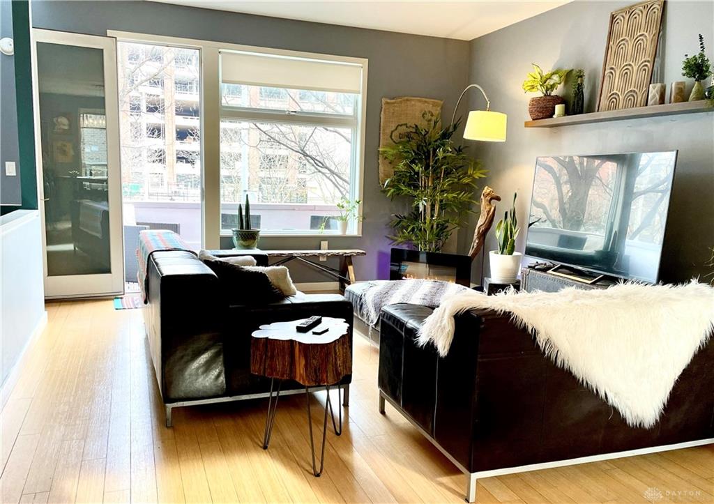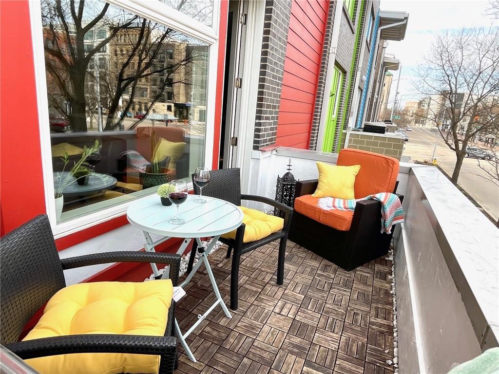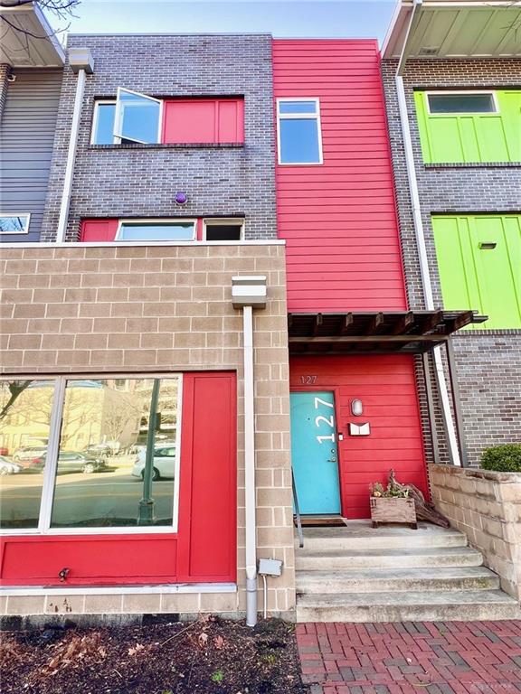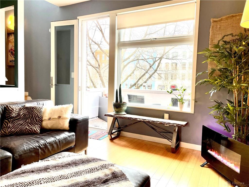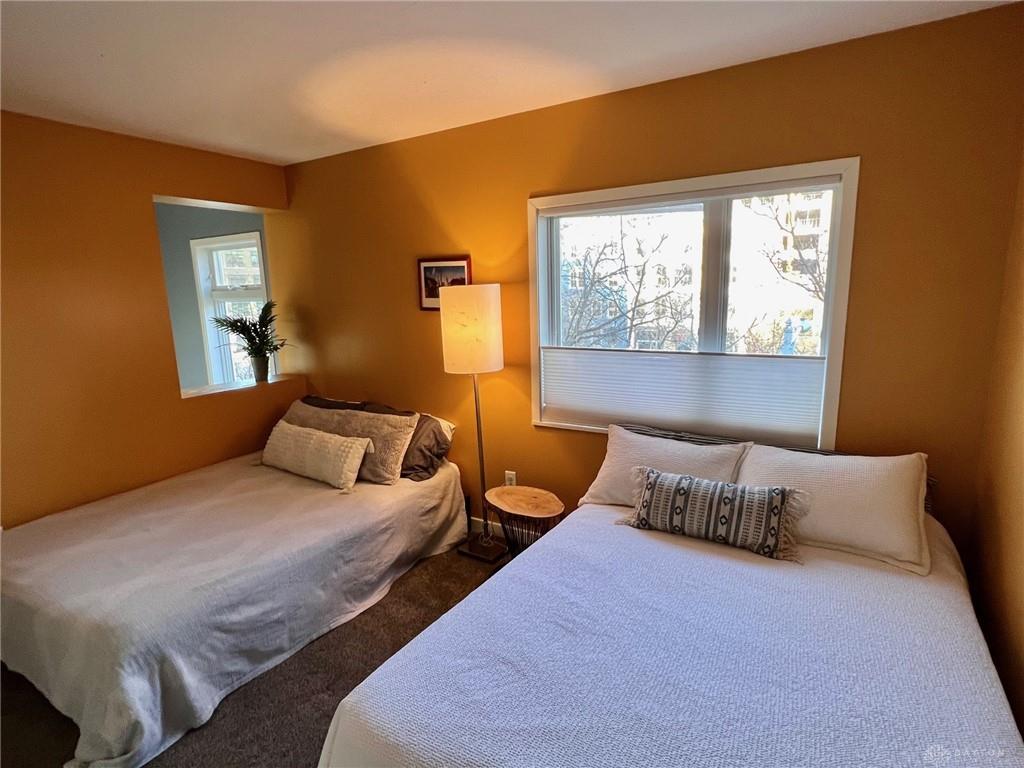 Relax in this spacious, highly efficient, centrally located downtown Dayton home. You will enjoy short walks to several restaurants and bars. The home is the perfect urban experience. Immerse yourself in this modern eclectic designed interior as you take in all of the best that Dayton has to offer. This Townhouse is perfectly located near the Schuster Performing Arts center, comedy clubs, music venues and much more. Dayton airport is a short 16 min drive. The first floor has an attached garage with beautiful tile floors. There is also a laundry room with a washer and dryer along with a storage closet beside the garage entrance. The second floor welcomes you into the main living area. The open concept living room space is well designed for maximum relaxing and entertaining. The kitchen with its marble countertops has all of the amenities you would expect: dish washer, oven, microwave, and fridge/freezer. From this floor you will also access a spacious balcony overlooking Patterson Blvd. There is also a 1/2 bath for guests on this floor. The third floor has both bedrooms as well as two full bathrooms. The master bedroom has plenty of room for a king bed. The second bedroom is pictured with a queen bed as well as a full. Both bedrooms have large built in closets with plenty of storage.