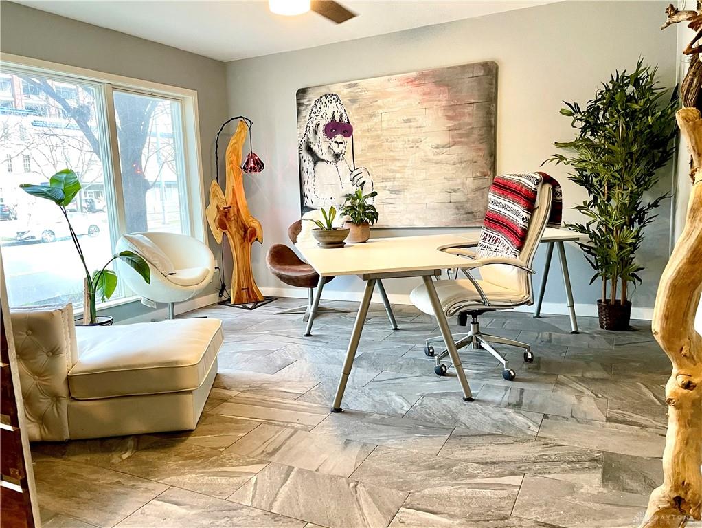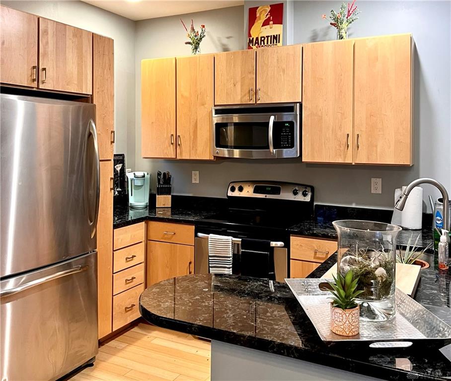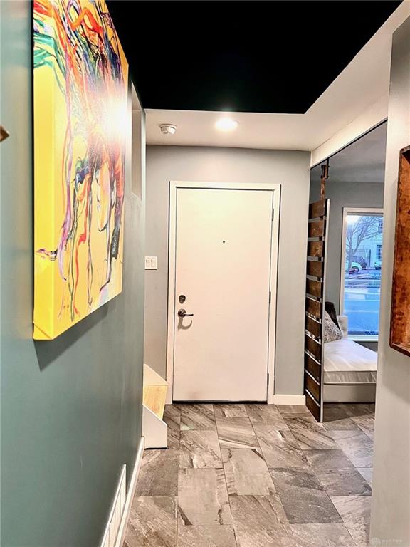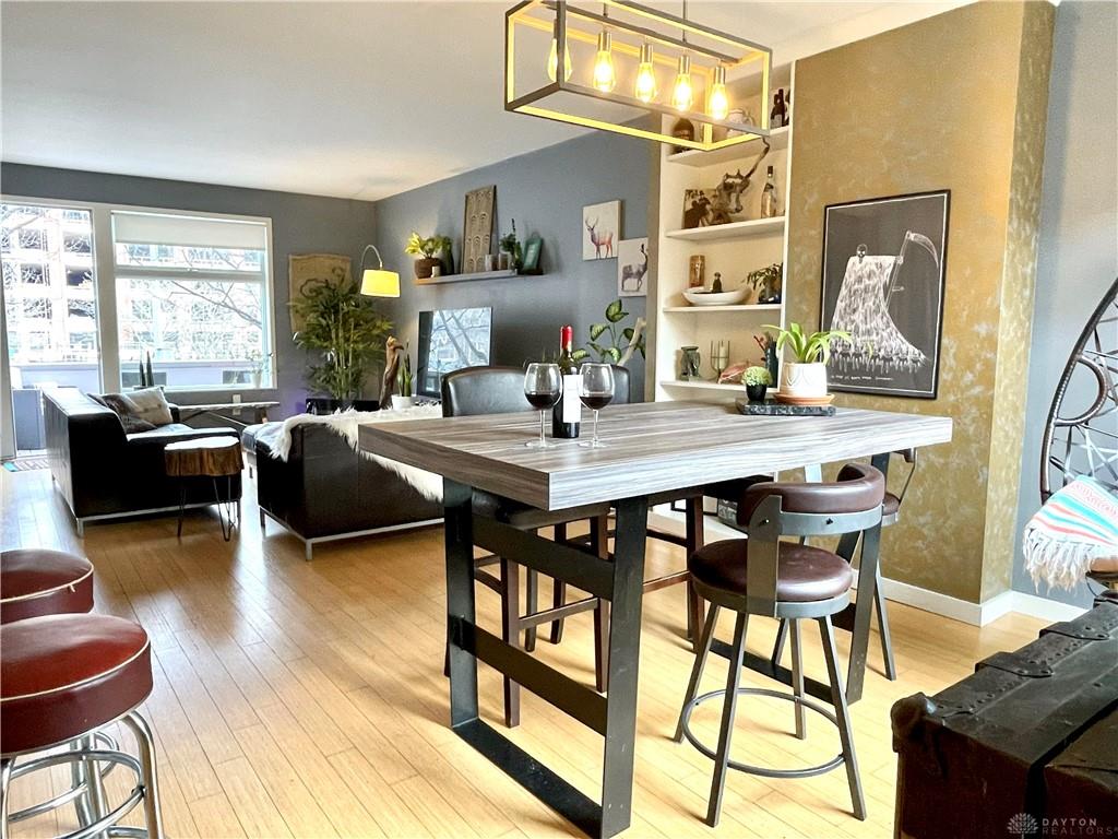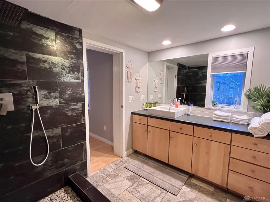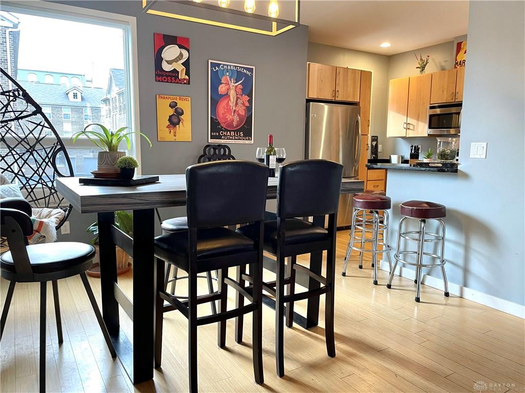 Relax in this spacious, highly efficient, centrally located downtown Dayton home. You will enjoy short walks to several restaurants and bars. The home is the perfect urban experience. Immerse yourself in this modern eclectic designed interior as you take in all of the best that Dayton has to offer. This Townhouse is perfectly located near the Schuster Performing Arts center, comedy clubs, music venues and much more. Dayton airport is a short 16 min drive. The first floor has an attached garage with beautiful tile floors. There is also a laundry room with a washer and dryer along with a storage closet beside the garage entrance. The second floor welcomes you into the main living area. The open concept living room space is well designed for maximum relaxing and entertaining. The kitchen with its marble countertops has all of the amenities you would expect: dish washer, oven, microwave, and fridge/freezer. From this floor you will also access a spacious balcony overlooking Patterson Blvd. There is also a 1/2 bath for guests on this floor. The third floor has both bedrooms as well as two full bathrooms. The master bedroom has plenty of room for a king bed. The second bedroom is pictured with a queen bed as well as a full. Both bedrooms have large built in closets with plenty of storage.