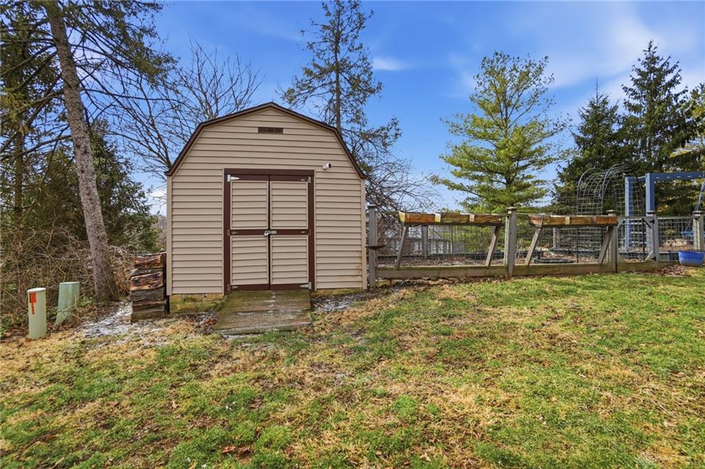 Beautifully updated brick ranch offering nearly 2,000 sq ft of spacious one-level living. The heart of the home is a fully remodeled kitchen featuring granite countertops, marble backsplash, quality cabinetry, and stainless appliances including a Bosch dishwasher and GE Profile double oven. Hardwood floors flow throughout the main living areas, with stunning Brazilian cherry floors in the primary bedroom. Extensive improvements include triple-pane windows (2022), roof, gutters and siding (2012), sliding patio door (2016), new storm door off from 3 season room (2026) and new hot water heater (2026). Thoughtful upgrades such as recessed lighting, updated trim, ceiling fans with overhead lighting in every bedroom, and remodeled bathrooms add style and function throughout. The laundry area was redesigned to include a walk-in pantry with custom California Closet system. Enjoy outdoor living with a fenced garden area, raised shed with stone foundation, and custom playset. Meticulously maintained with thoughtful updates throughout. A complete list of improvements and features is attached to the listing. Please note-The fireplace has not been utilized by the seller and is not warranted.