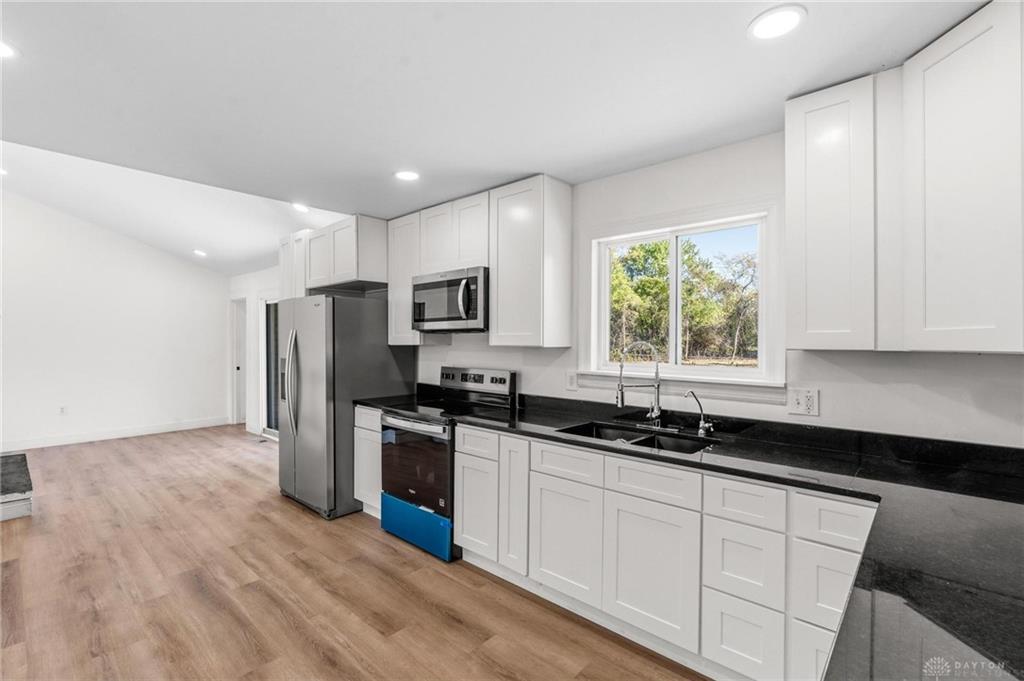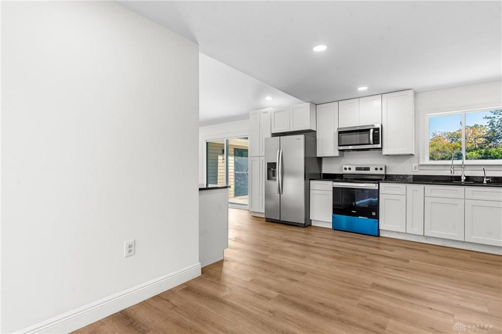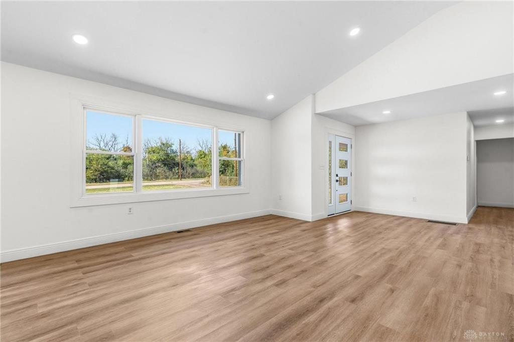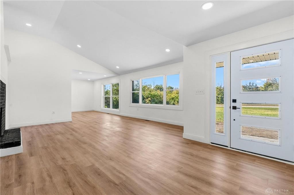 This stunning home has been fully updated from top to bottom with all major improvements already completed just move in and enjoy! Nestled on a spacious 0.99-acre, two-parcel lot, this property offers the perfect combination of modern comfort, peace of mind, and room to grow. Step inside to discover a bright, open layout featuring brand-new flooring, drywall, windows, doors, and fresh finishes throughout. The modern kitchen shines with new cabinets, appliances, and vanities, while three fully remodeled bathrooms bring style and convenience to every corner of the home. Major updates include a new roof, gutters, siding, soffits, well pump and pressure tank, subfloors, HVAC/heat pump system AirTemp 18 SEER 4-ton heat pump system, backed by a 10-year parts warranty and 2-year labor warranty for added peace of mind, garage door with motor, entire house filtered well water and RO system, updated plumbing and electrical, new septic leach lines, and extensive land clearing. Please note: the home features two fireplaces, which have not been inspected and are not warranted. Enjoy the benefits of a move-in ready home where everything has been redone with care and quality craftsmanship. The large double lot offers endless possibilities create a garden, build an outdoor entertainment space, or simply enjoy the extra privacy. Don’t miss this rare opportunity to own a completely renovated home on nearly an acre in a convenient Dayton location. Perfect for buyers seeking worry-free living and great value with modern upgrades already in place!