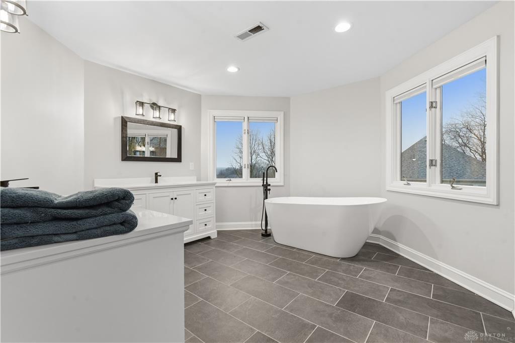 Spacious custom home offering over 6,000 sq ft in a highly desirable Beavercreek neighborhood! This impressive property features a grand two-story foyer and a bright, open layout designed for comfortable living and entertaining. The main level is thoughtfully designed, offering a large great room with a gas fireplace, formal living and dining rooms, a convenient laundry room, and a bright morning room. The expansive kitchen features granite countertops, tile flooring, a center island, walk-in pantry, planning desk, and abundant cabinetry and counter space. Upstairs are four generously sized bedrooms, each with walk-in closets, including a spacious primary suite with a beautifully remodeled bath and two oversized walk-in closets. The main bathroom offers a dual sink vanity, tile flooring, and a separate shower area.The finished walk-out lower level adds flexibility with a second fireplace, expansive living area, and a room that could easily serve as a fifth bedroom, home office, or workout space. A three-car garage and large backyard with composite deck complete the property. Offering exceptional square footage and a functional layout, this home presents a fantastic opportunity to add your personal touches and build equity in a sought-after neighborhood. Updates include: Upstairs furnace 2010, main furnace & AC 2021, water heater 2021, roof approx. 12 years old, oven & microwave 4 years, new front porch 2025, various replacement windows 2026, master bath remodel, updated lighting & hardware 2023. Excellent rated schools! No city tax!